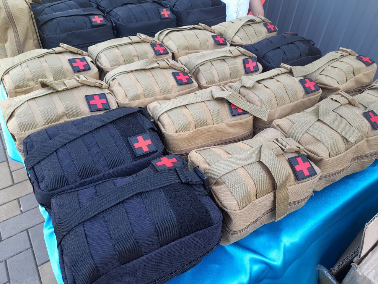 Здесь можно было увидеть все необходимое для спасения жизни военнослужащих: турникеты, ИПП, аптечки, в которых есть все, чтобы оказать первую помощь раненому бойцу, сухие души и многое другое.