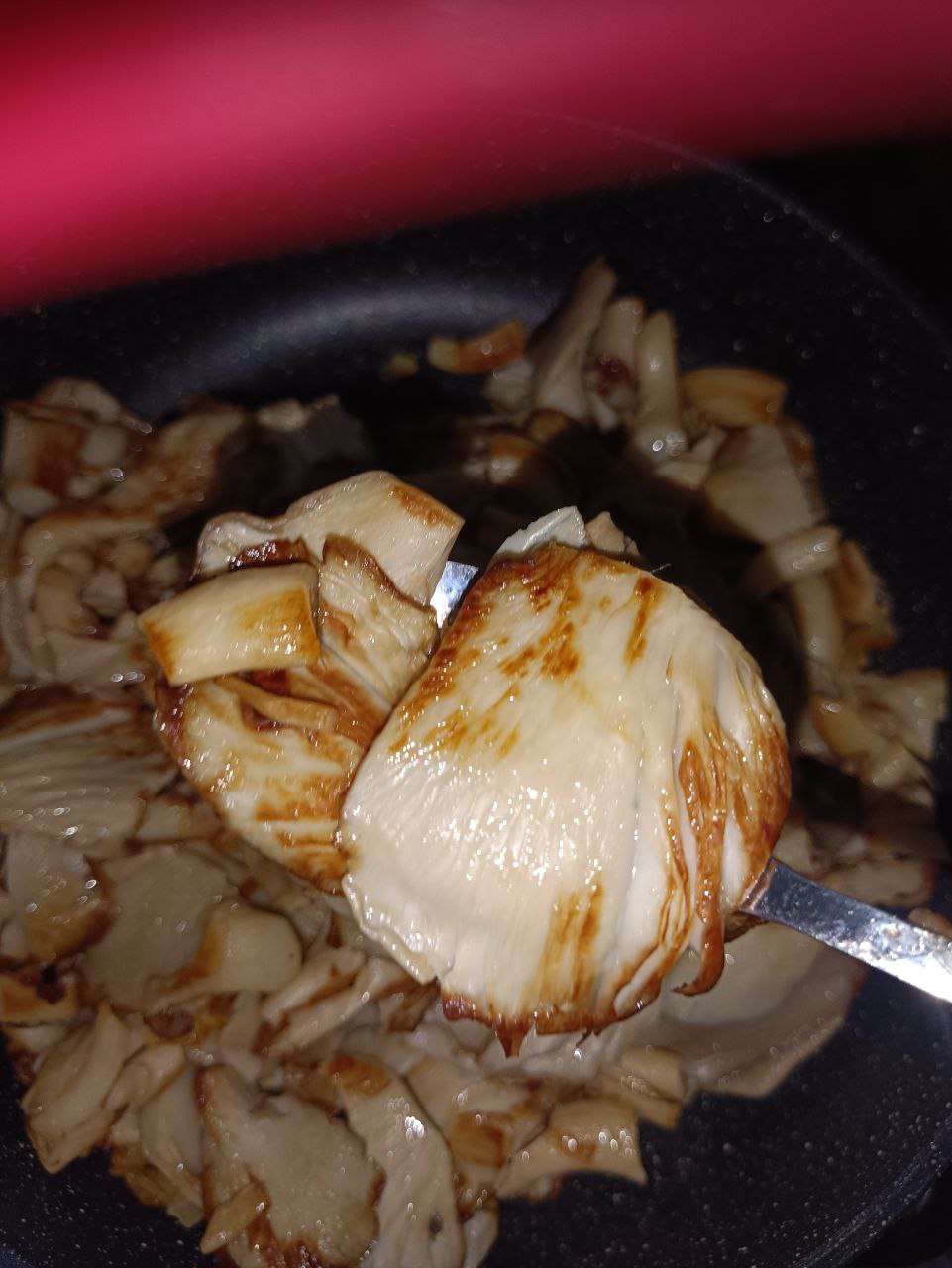- Большую луковицу нашинковала полукольцами, слегка притомила на масле. Добавила грибы.