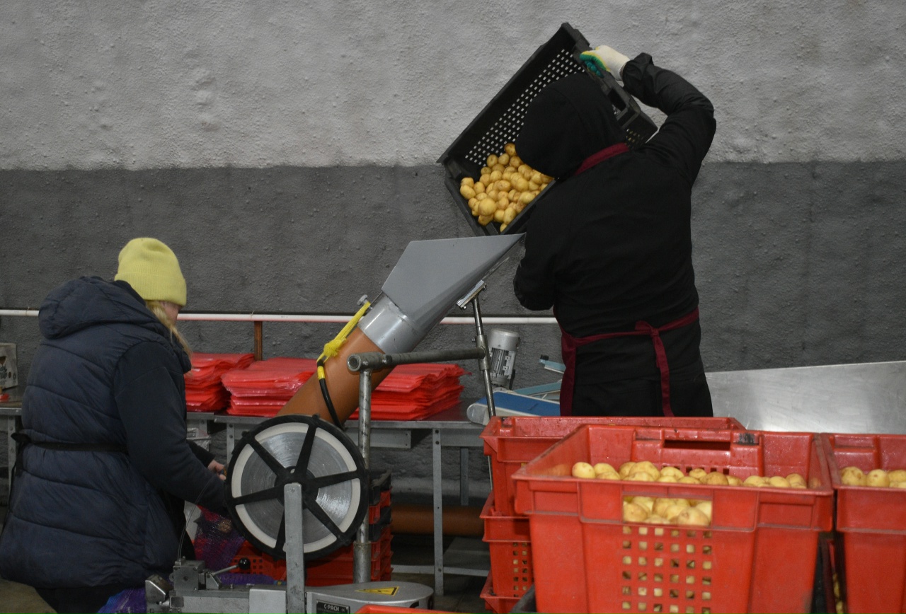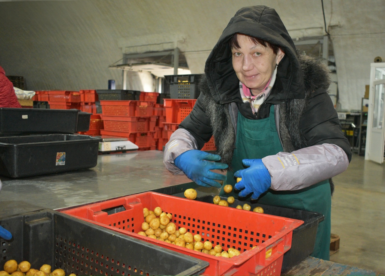 Но даже зимой работники кооператива, которых без малого три десятка человек, трудятся в ангаре: моют и фасуют овощи. Например, в день нашего визита фасовали мелкую картошку второго урожая. Часто такой размер интересует рестораны, шеф-повара запекают корнеплоды с кожурой и подают в качестве гарнира.