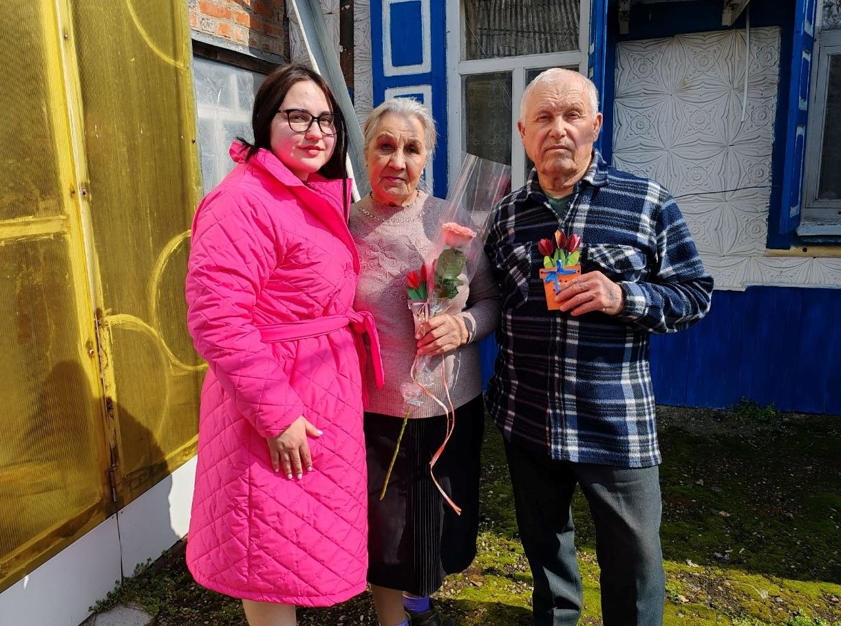 В честь праздничной даты молодой депутат Кореновского района Анна Тарасова вместе с культорганизатором сельского Дома культуры станицы Раздольной Эмилией Памаранцевой адресно поздравили ветеранов культуры Владимира и Валентину Химиченко.