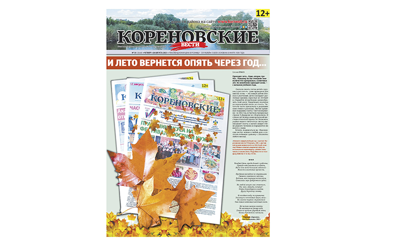 Читайте в свежем номере "Кореновских вестей!" (№ 35 от 28 августа)
