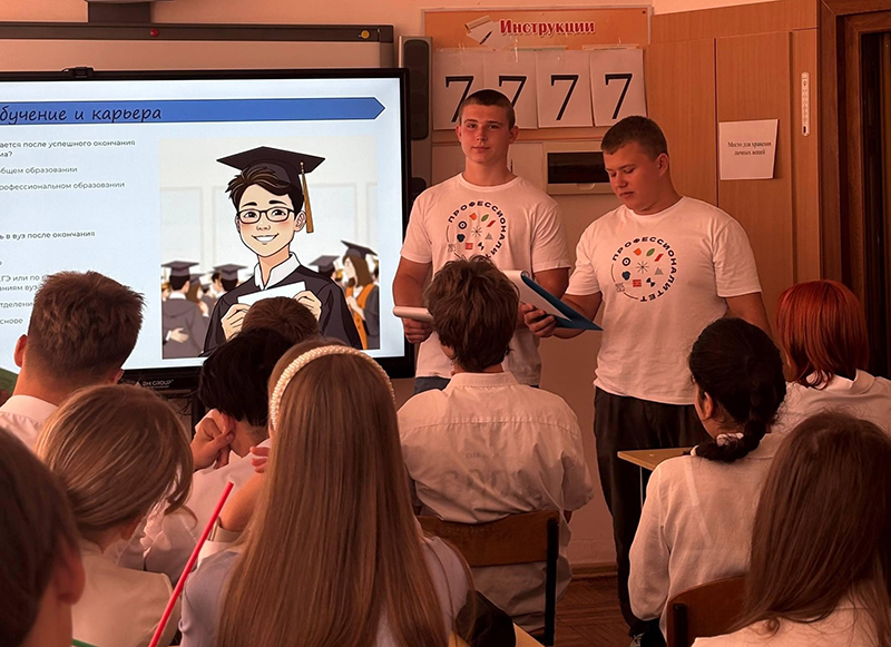 В начале встречи школьники окунулись в увлекательную историю системы СПО, узнали о её становлении и развитии, о выдающихся достижениях и о значимости среднего профессионального образования в современном мире.