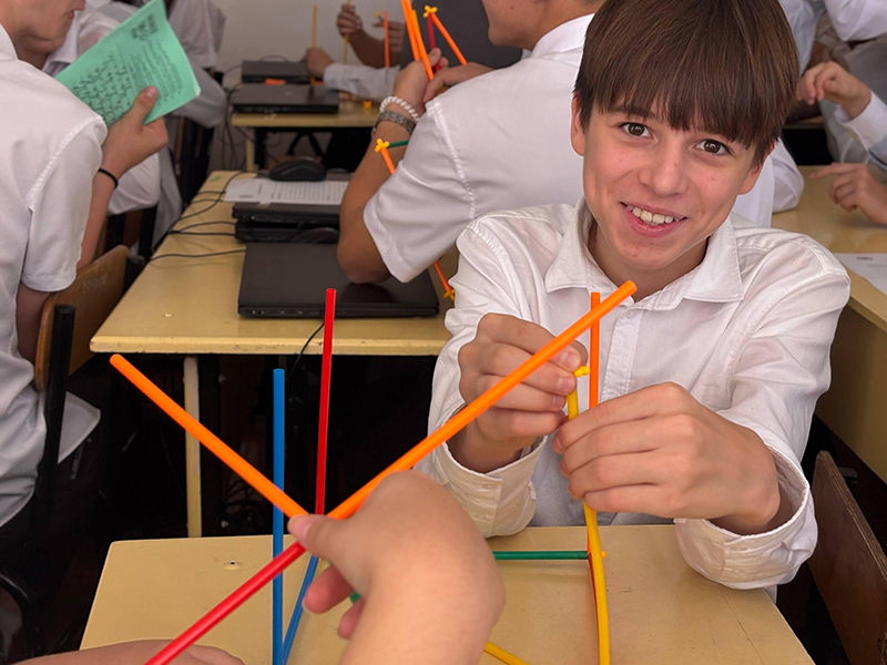 Но самым ярким моментом игры стало творческое задание, где школьникам предстояло проявить свои конструкторские способности и воображение. Разделившись на команды, ребята получили задание спроектировать новые здания, используя имеющиеся материалы. Школьники продемонстрировали потрясающую креативность, смекалку и умение работать в команде.