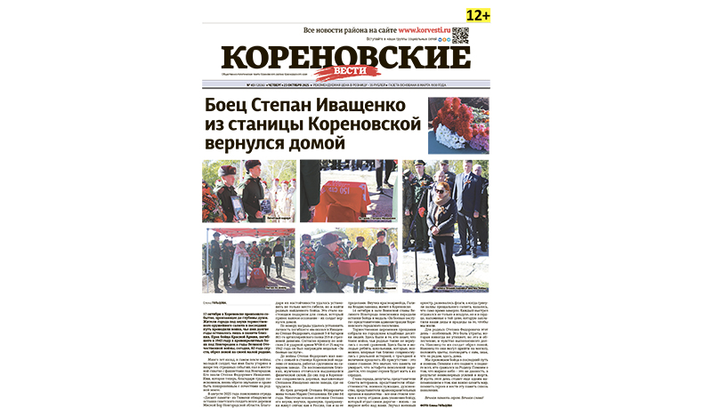 Читайте в свежем номере "Кореновских вестей" (№ 43 от 23 октября)
