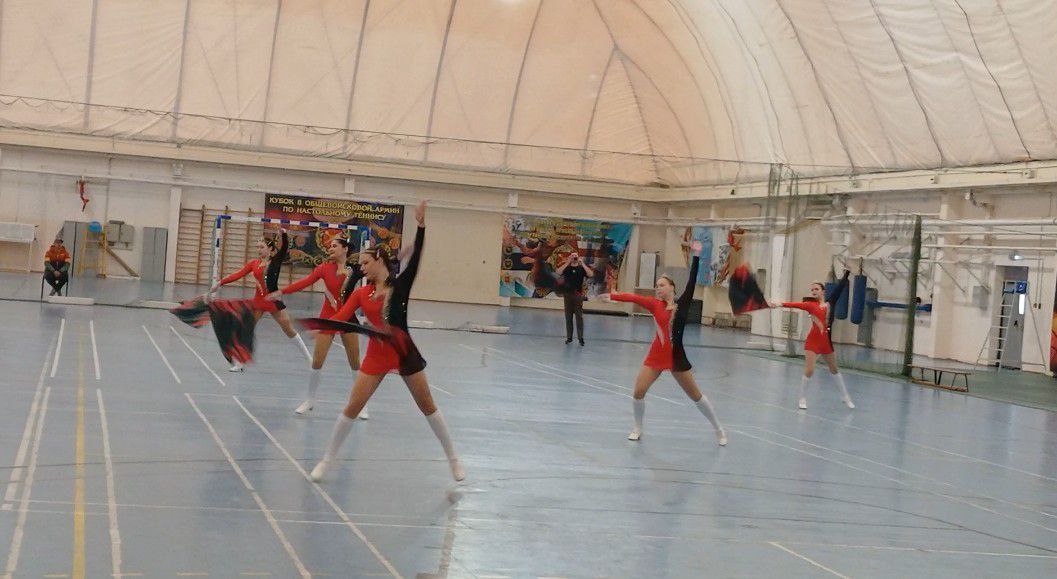 Праздничную программу продолжил танцевально-спортивный клуб «Хай-Скай»: девушки показали ритмичное командное выступление с яркими элементами.