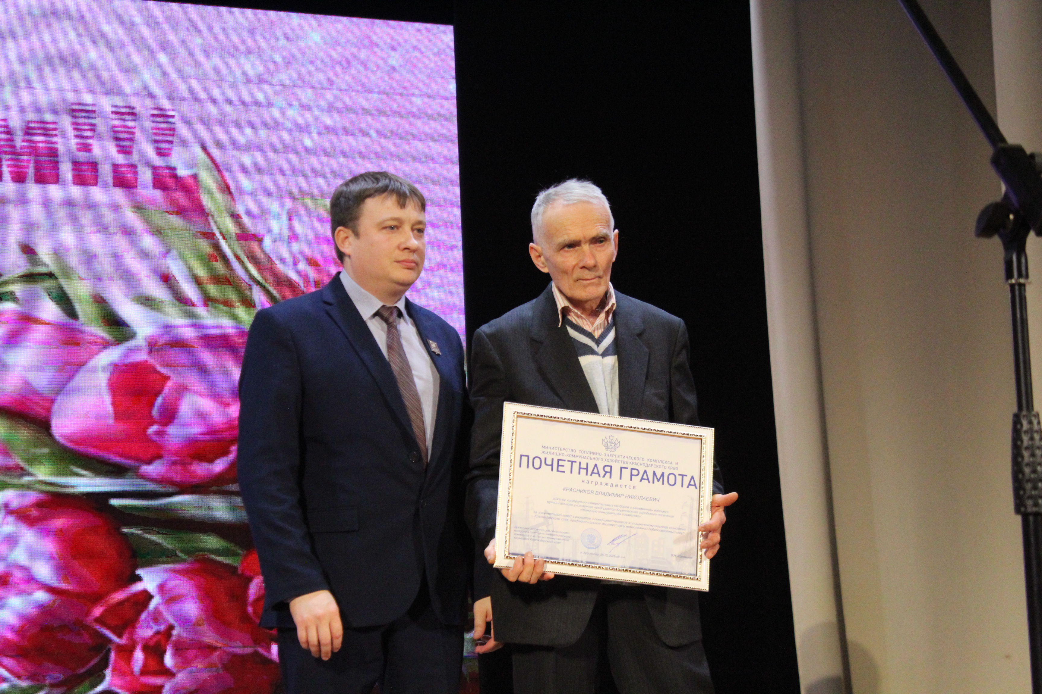 В Кореновске торжественно отметили профессиональный праздник работников жилищно-коммунального хозяйства. В зрительном зале Городского Дома культуры собрались представители отрасли, чей ежедневный труд остается «невидимым», но необходимым для комфортной жизни тысяч жителей. В фойе звучал саксофон, создавая торжественную и праздничную атмосферу.