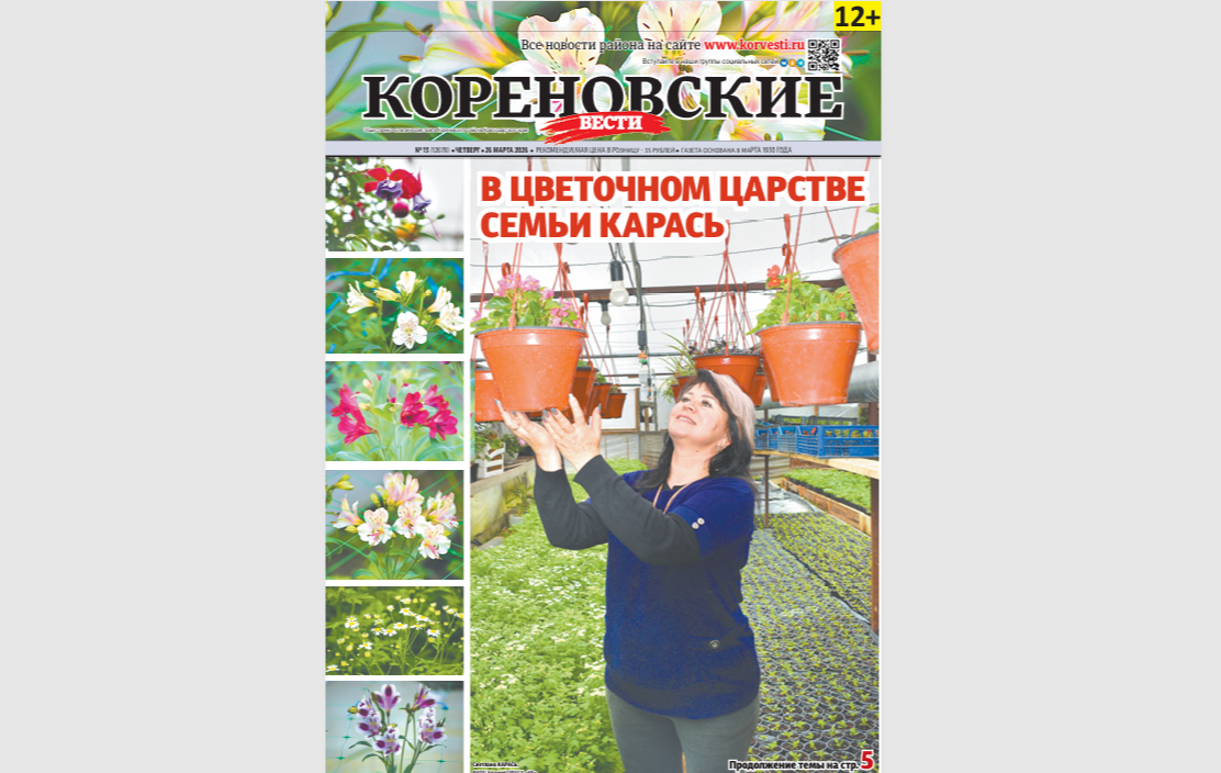 Читайте в свежем номере "Кореновских вестей" (№ 13 от 26 марта)