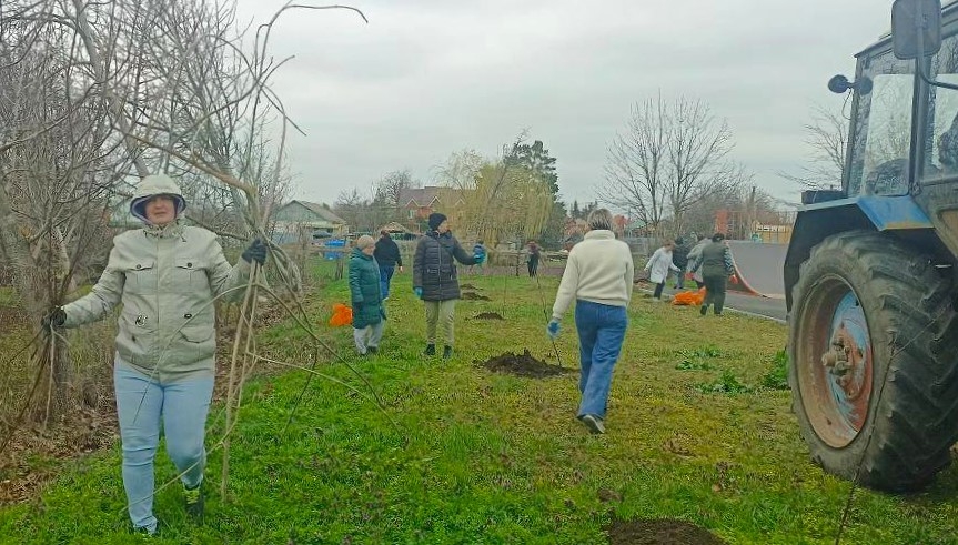 В ходе субботника представители общественного актива совместными усилиями очистили общественные места от мусора, обрезали дикую поросль и высадили 15 декоративных яблонь у скейт‑площадки.