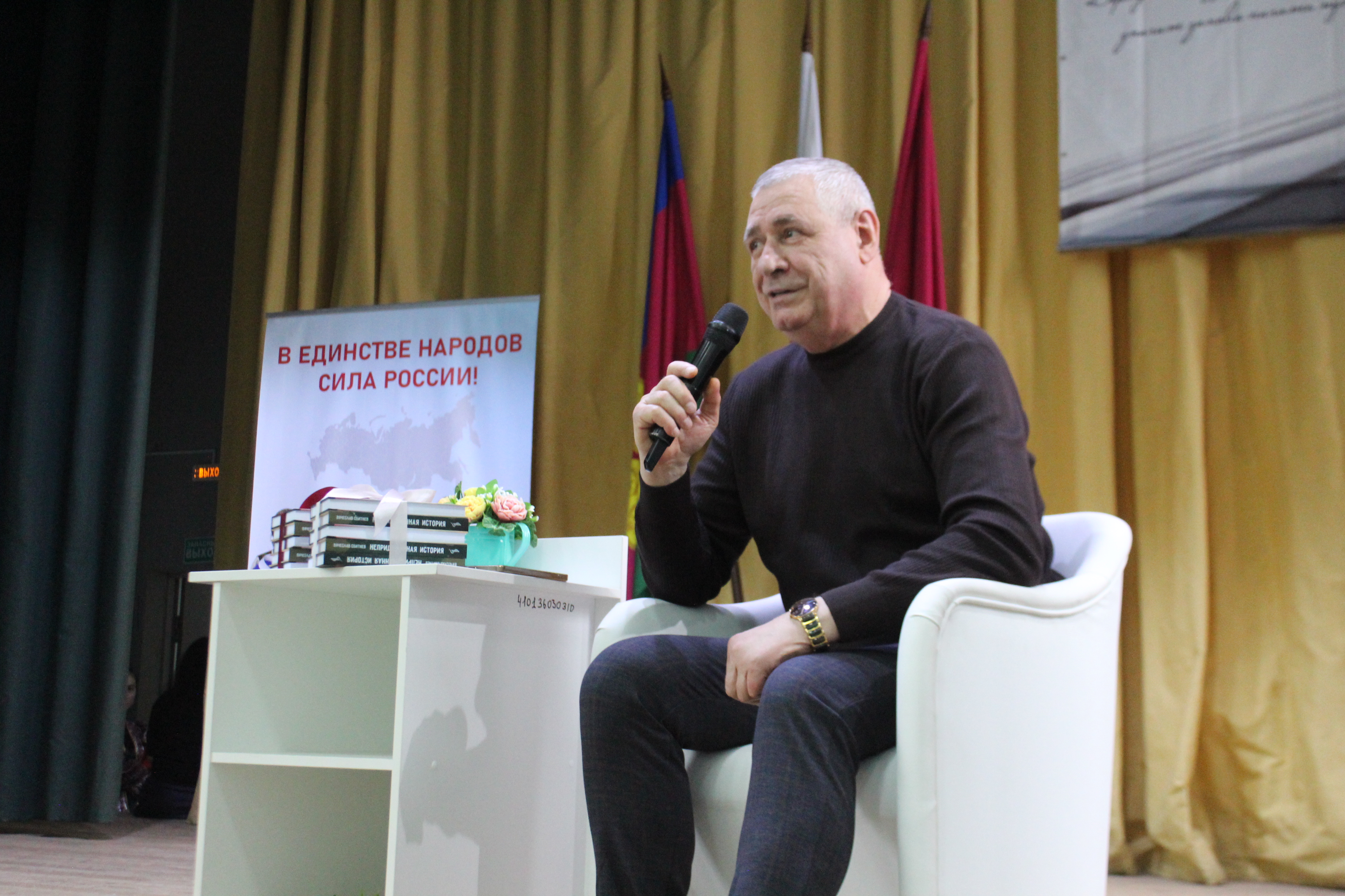 В зеленом зале районного Центра народной культуры и досуга прошла презентация книги «Непридуманная история» - пятого произведения известного кубанского писателя, члена Союза писателей России, депутата Законодательного Собрания Краснодарского края Вячеслава Сбитнева. Главными гостями встречи стали старшеклассники городских школ.