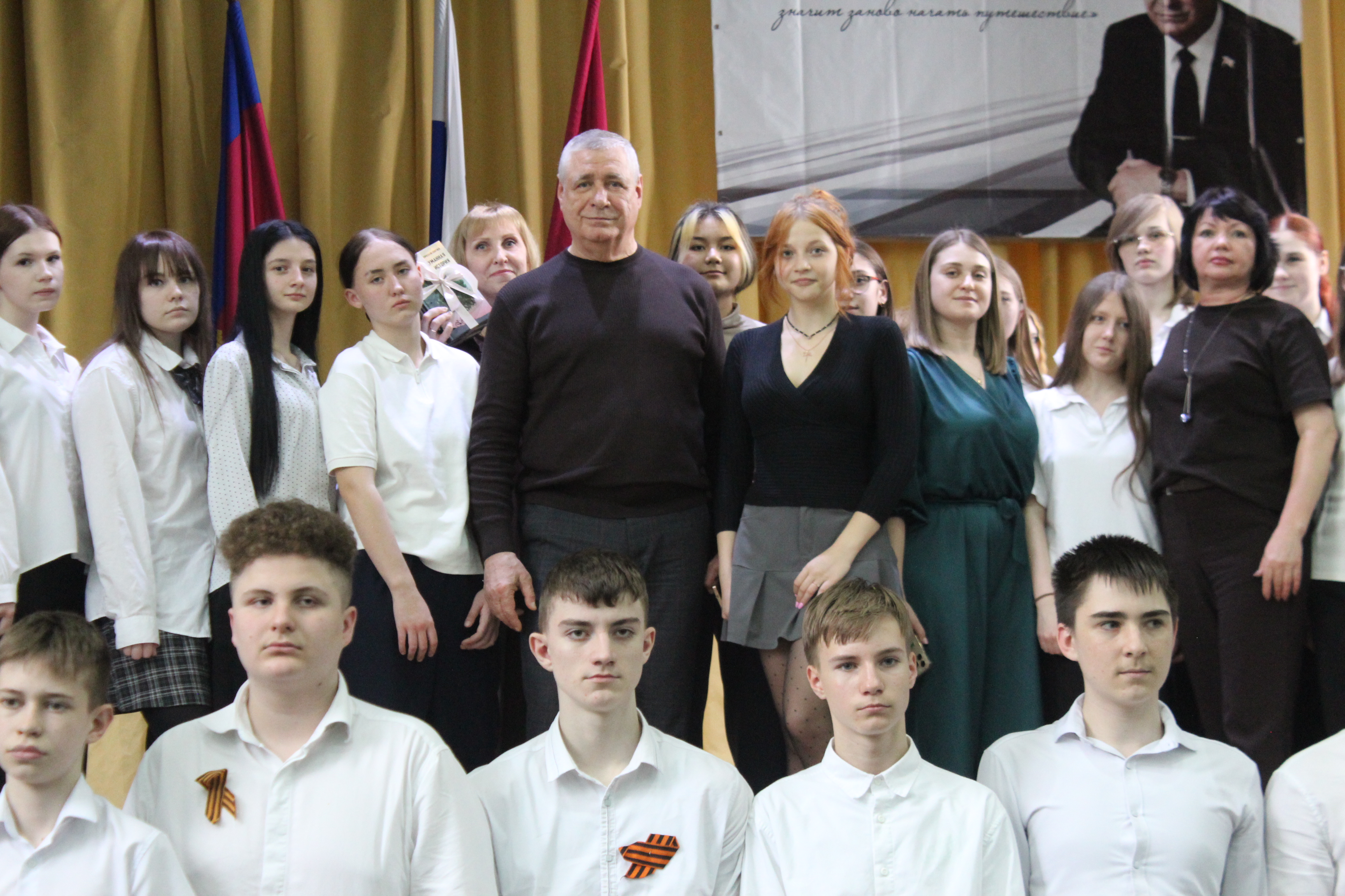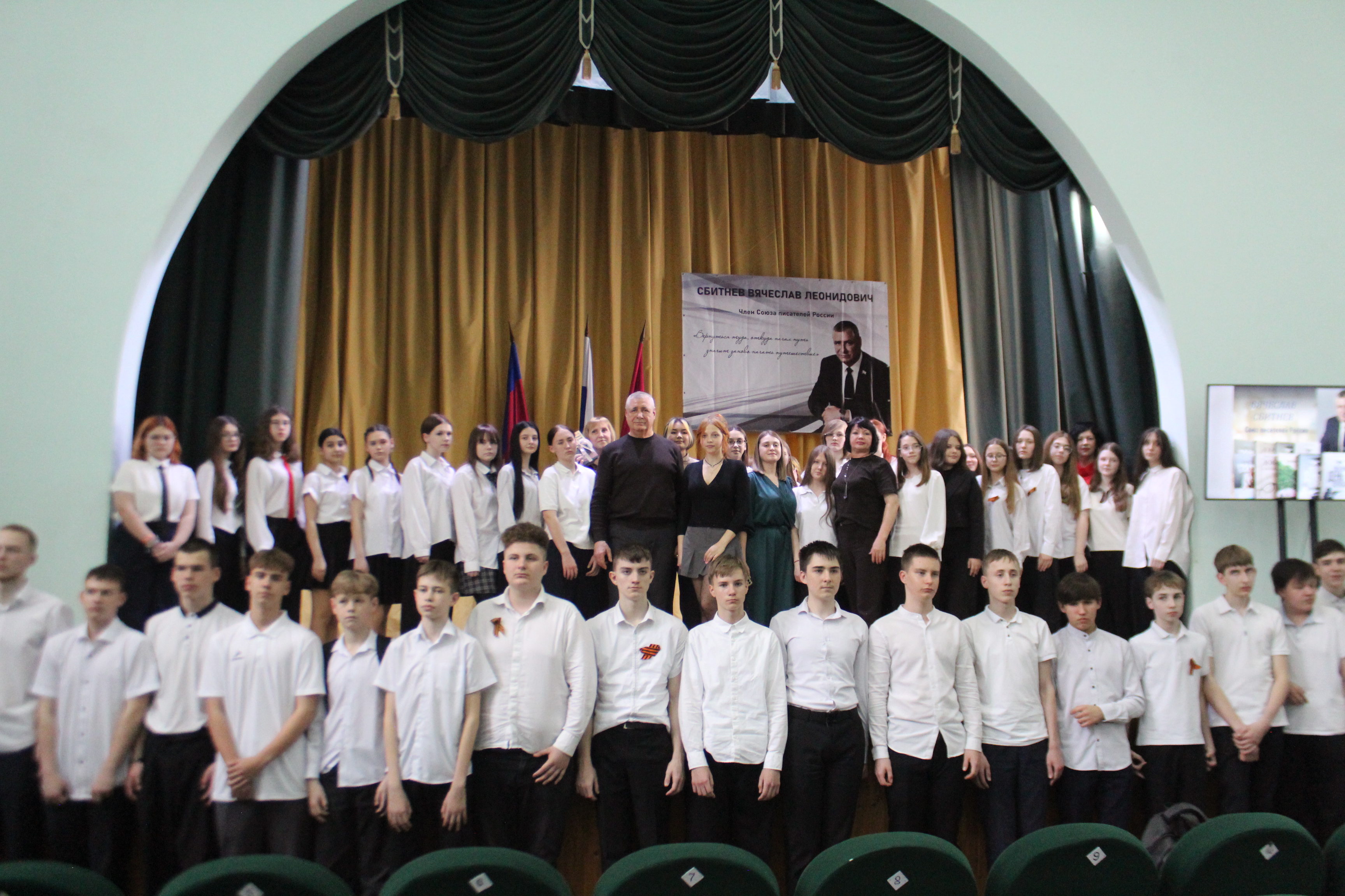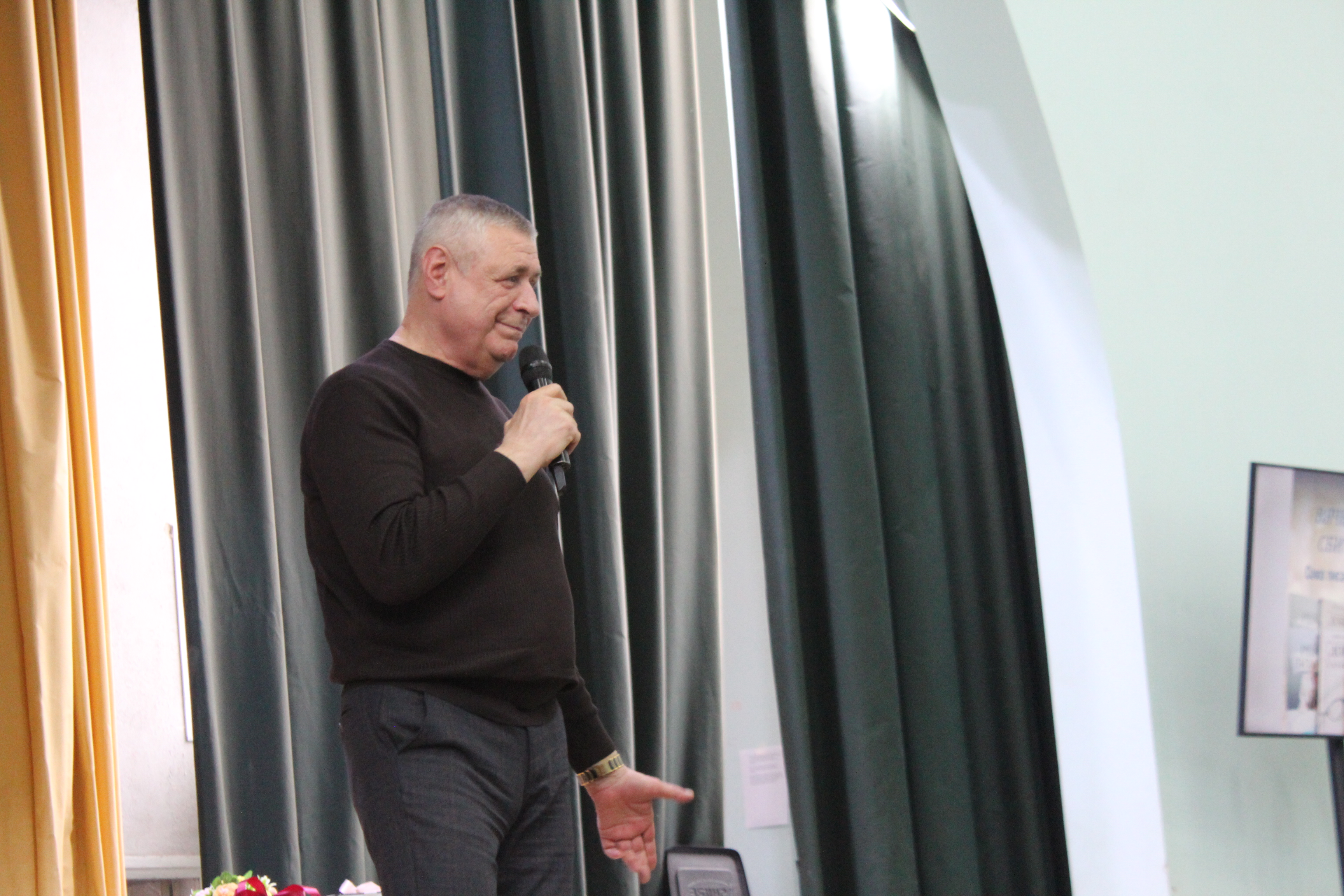 Встреча со школьниками получилась живой, веселой и откровенной. Вячеслав Сбитнев рассказал, как рождалась книга, какие материалы и истории легли в её основу, и с теплотой вспомнил свои школьные годы — учителей, друзей, первые литературные опыты.