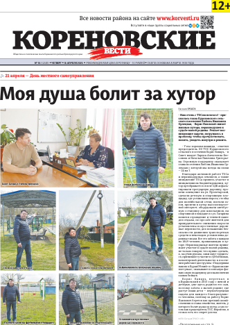 Читайте в свежем номере Кореновских вестей от 16 апреля