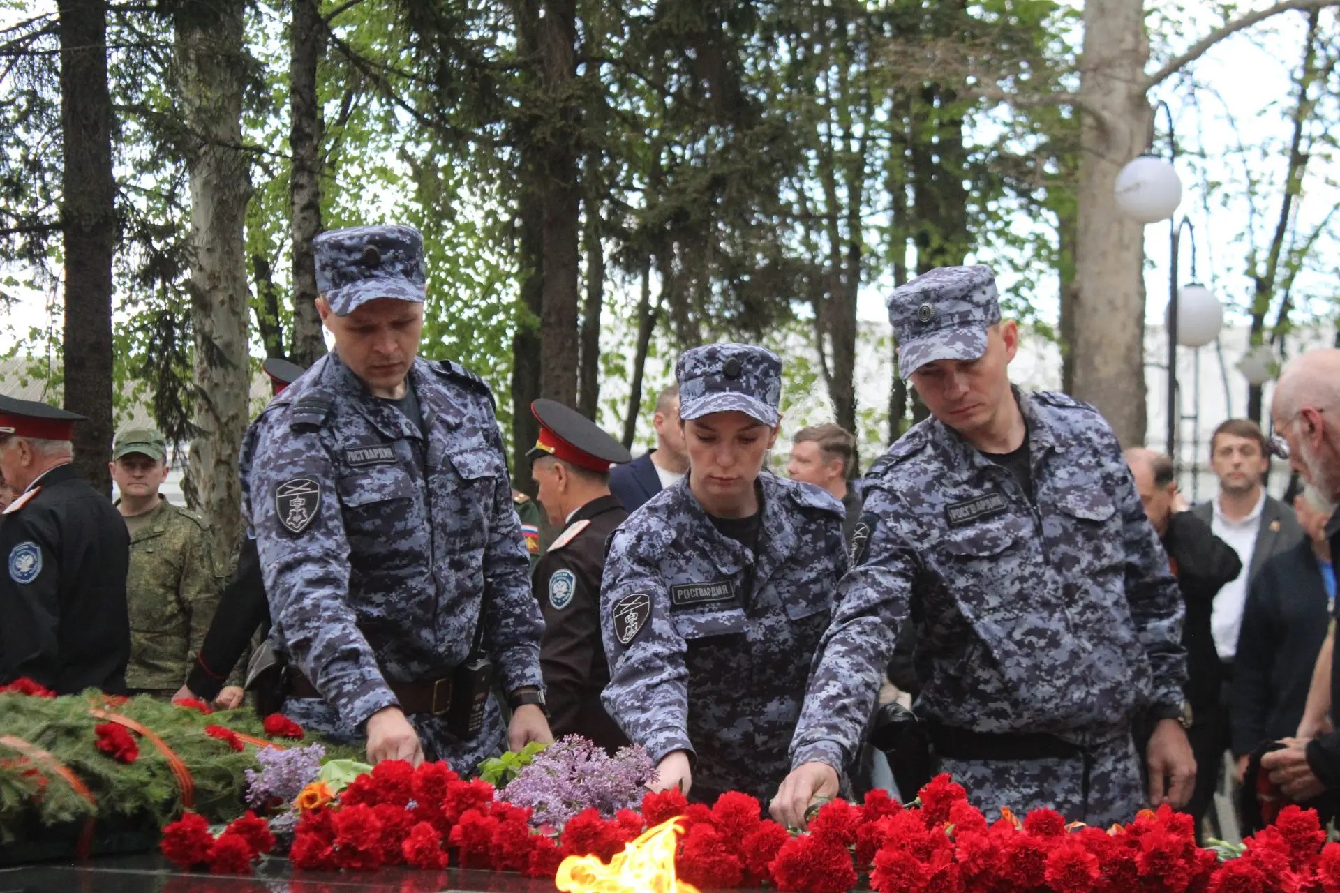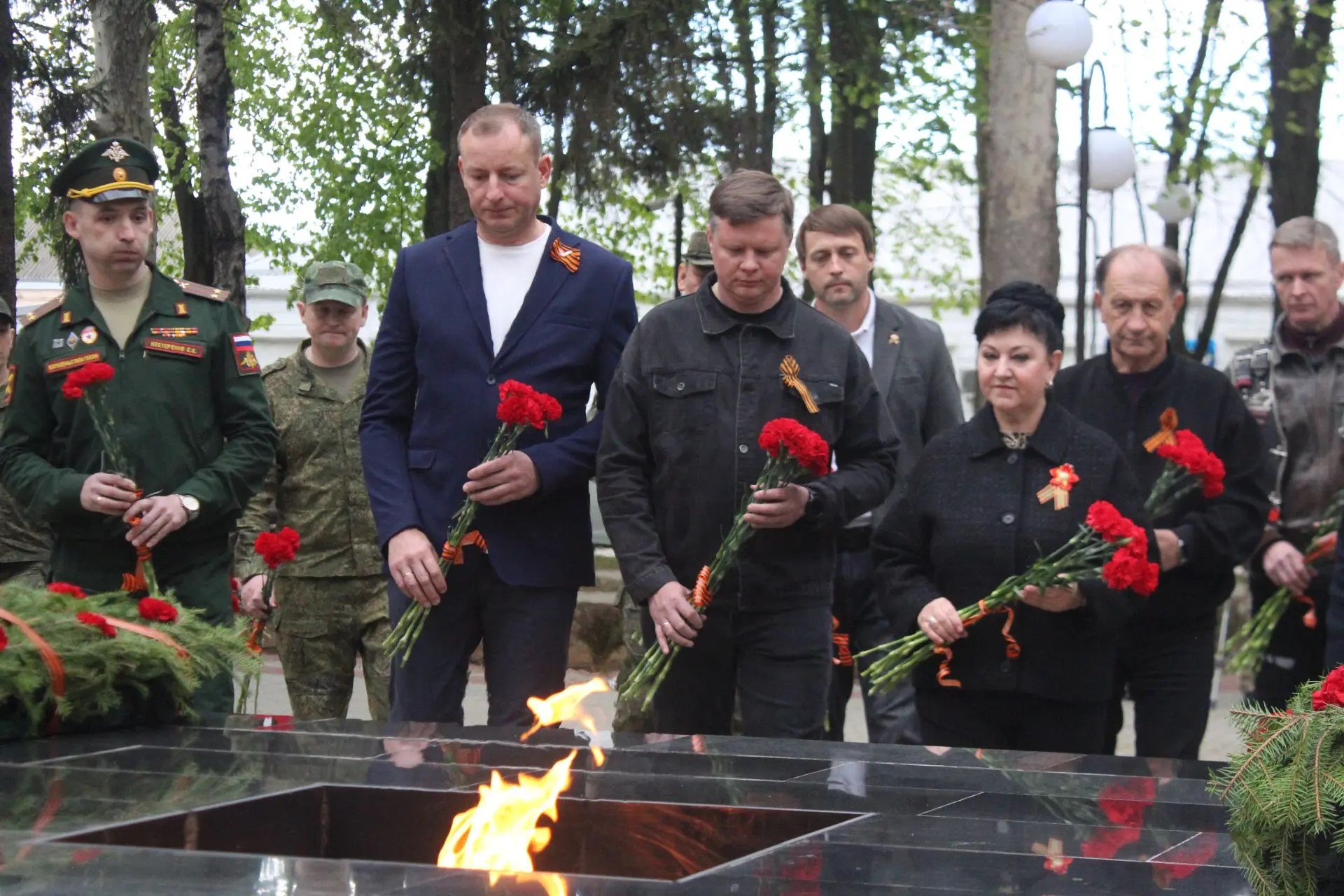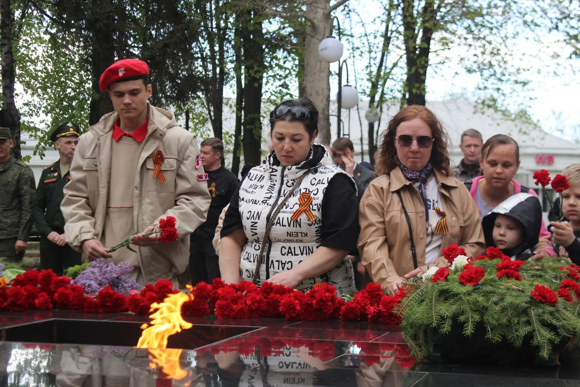 После торжественной части началась минута молчания под звуки метронома, прерванная залпами стрелкового салюта. Затем в знак скорби по ушедшим из жизни к Вечному огню началось возложение венков и цветов. В этот момент у мемориала не было разделения на официальных лиц и простых граждан - только общее чувство благодарности и памяти.