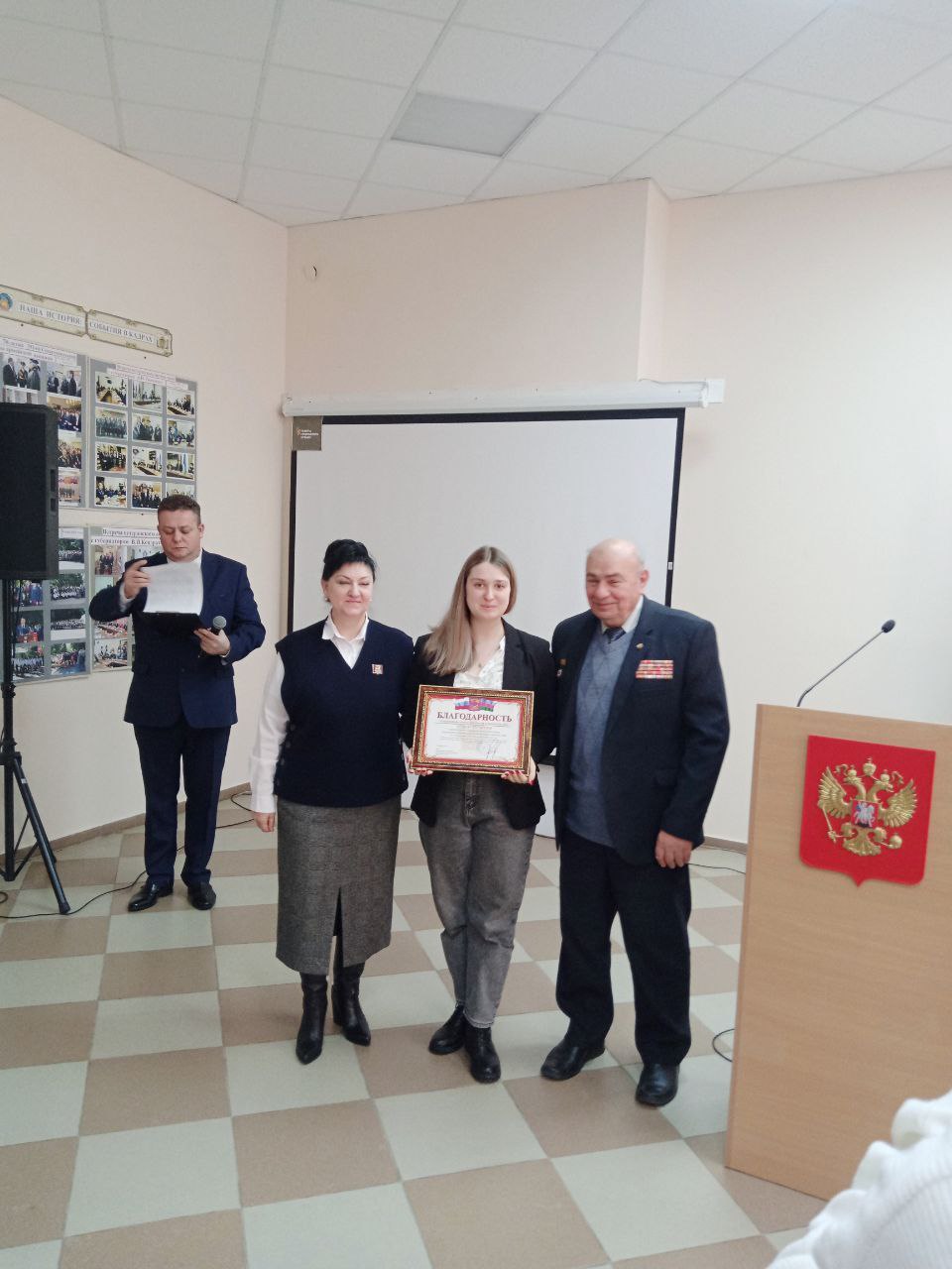 После завершения официальной части состоялась церемония награждения. Благодарности главы муниципального образования Кореновский муниципальный район Краснодарского края Сергея Анатольевича Голобородько были удостоены учреждения и организации, достигшие наиболее высоких результатов в военно-патриотическом направлении.