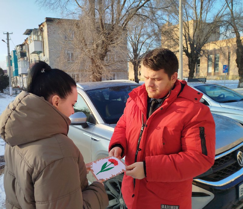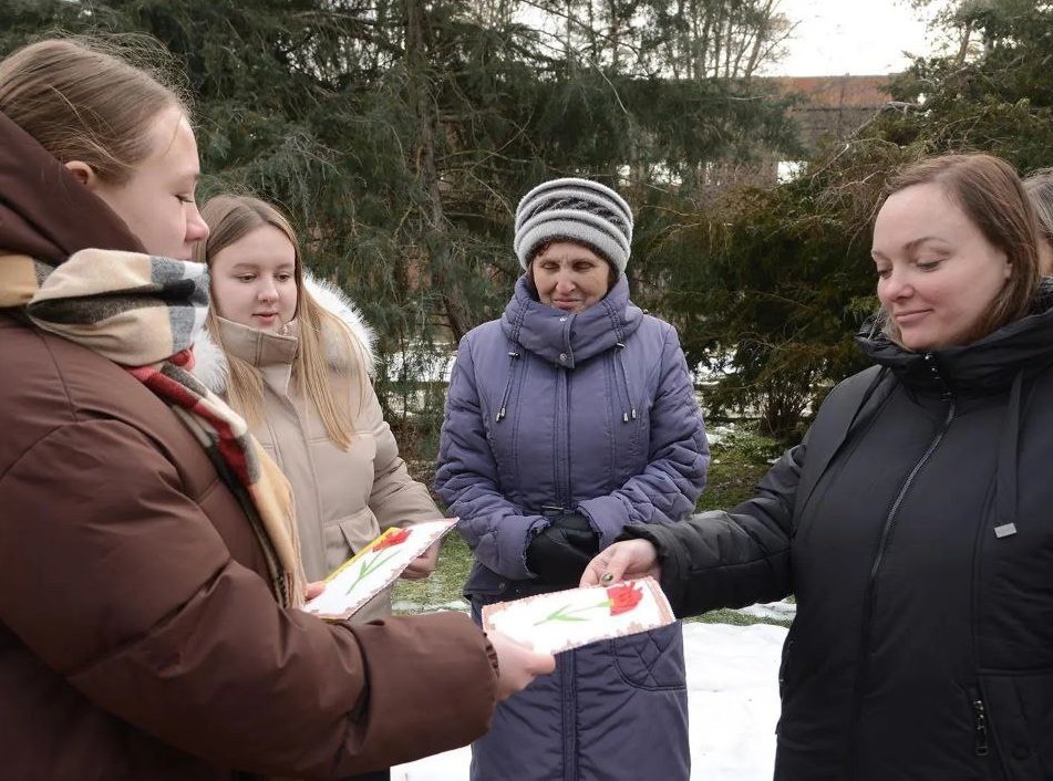 В день освобождения п. Новоберезанского юнармейцы местной школы вручили памятные открытки жителям поселка.
