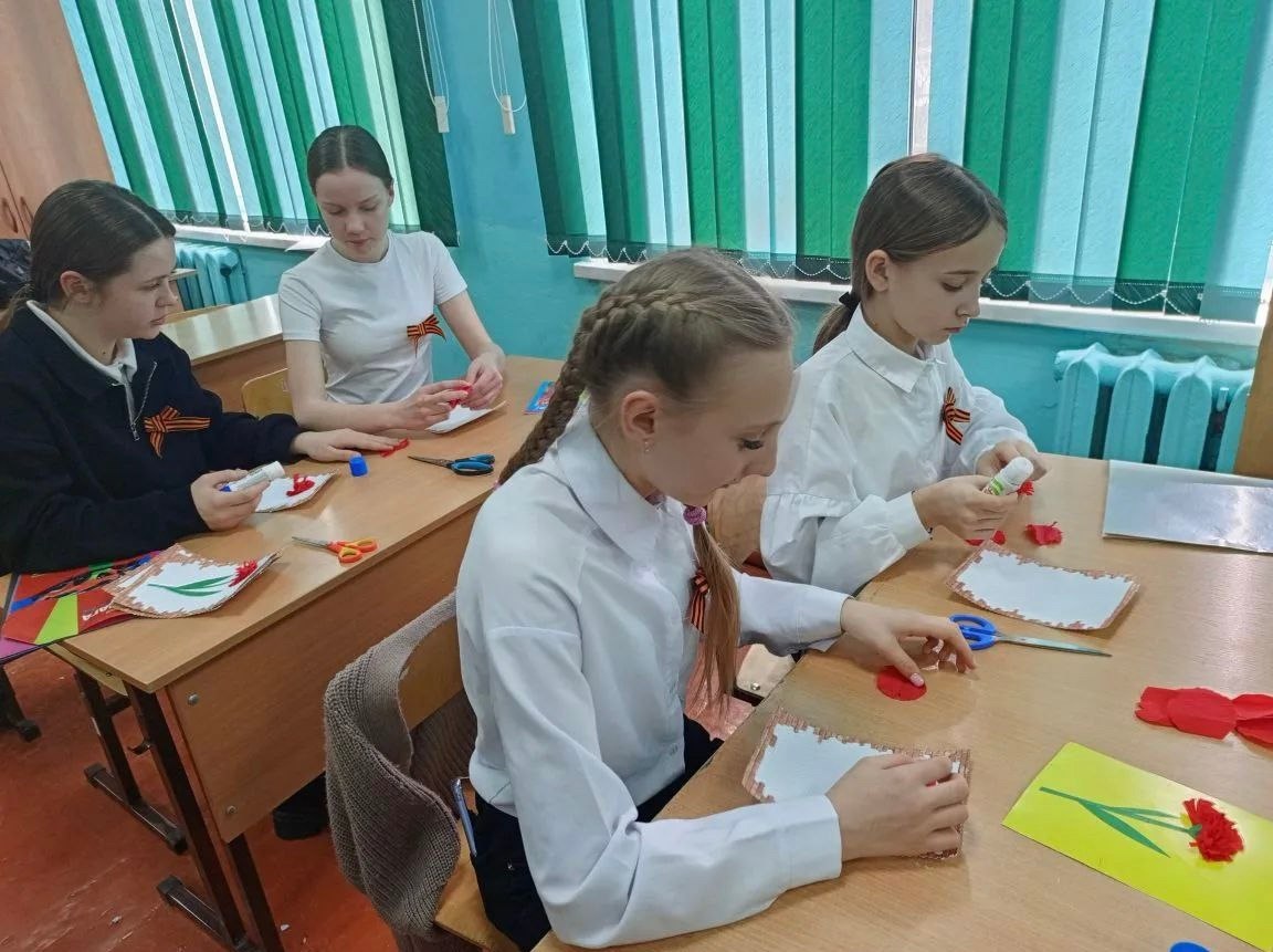 В рамках акции учащиеся школы №15 п. Новоберезанского сделали открытки, на которых была размещена краткая информация по истории освобождения посёлка от немецко-фашистских захватчиков в феврале 1943 года, каждая открытка украшена одним из символов Победы – красной гвоздикой.