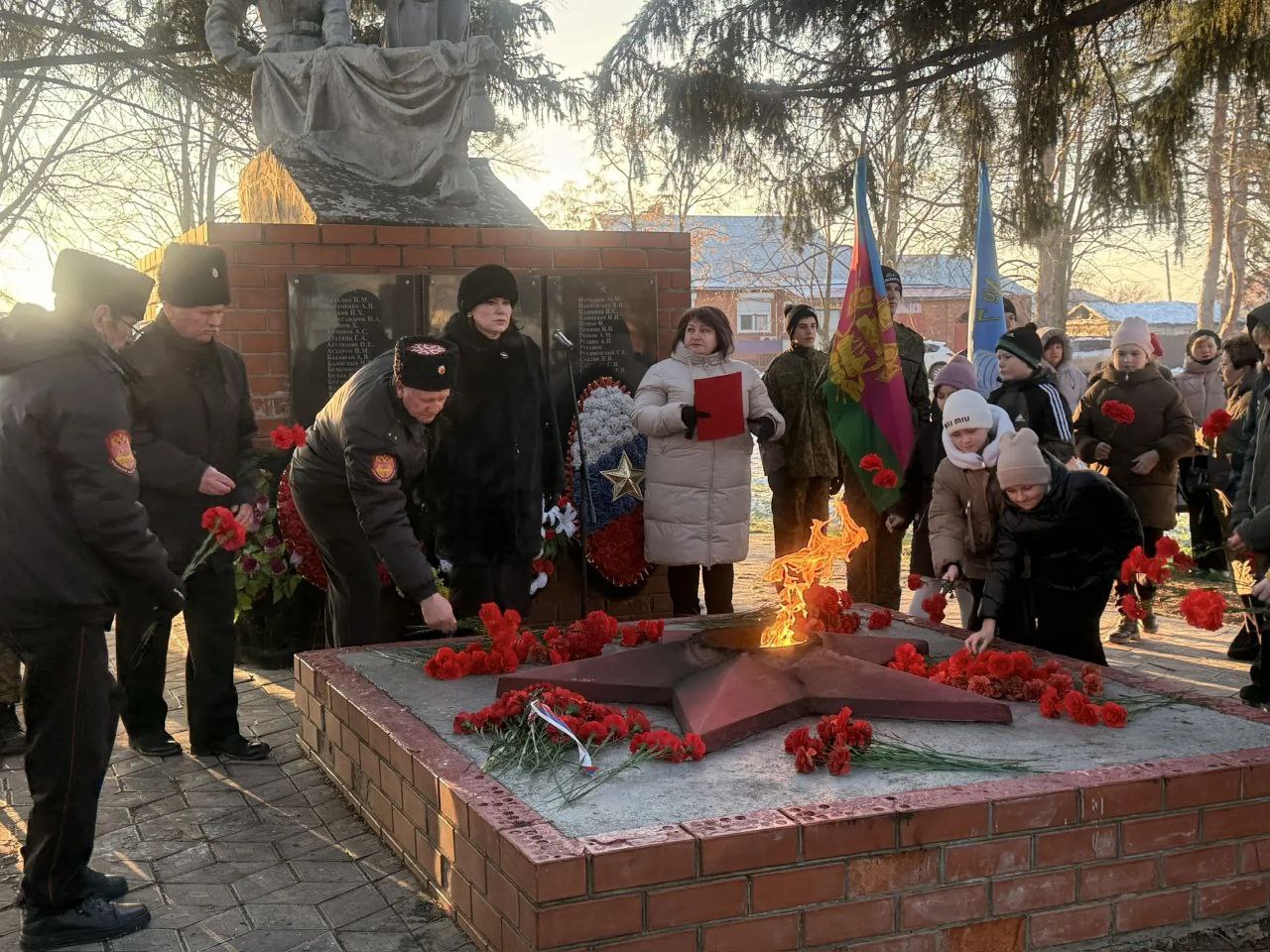 На рассвете 11 февраля 1943 года, ровно 83 года назад, советские войска освободили станицу Дядьковскую от немецко-фашистских захватчиков. Тёмные февральские ночи тех дней озарились светом свободы, завоёванной ценой невероятного мужества. Сегодня утром у Вечного огня собрались жители. Как и каждый год, к мемориалу Славы они возложили памятную гирлянду и цветы — алые, как огонь памяти, и белые, как февральский снег.