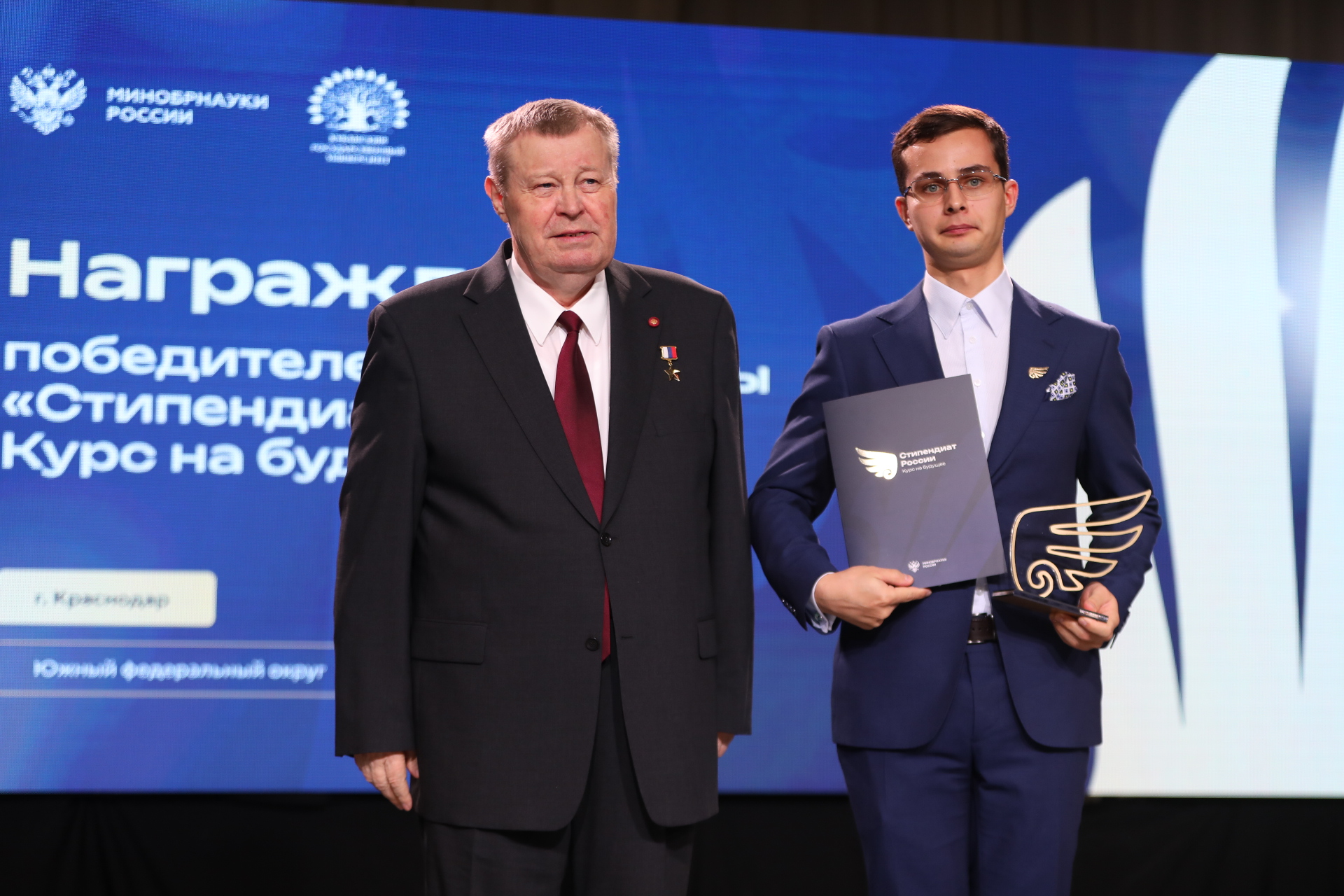 Лауреатов стипендиальных программ поздравил Герой России, участник СВО и программы «Время Героев», директор департамента государственной молодежной политики и воспитательной деятельности Минобрнауки России Сергей Бойко.