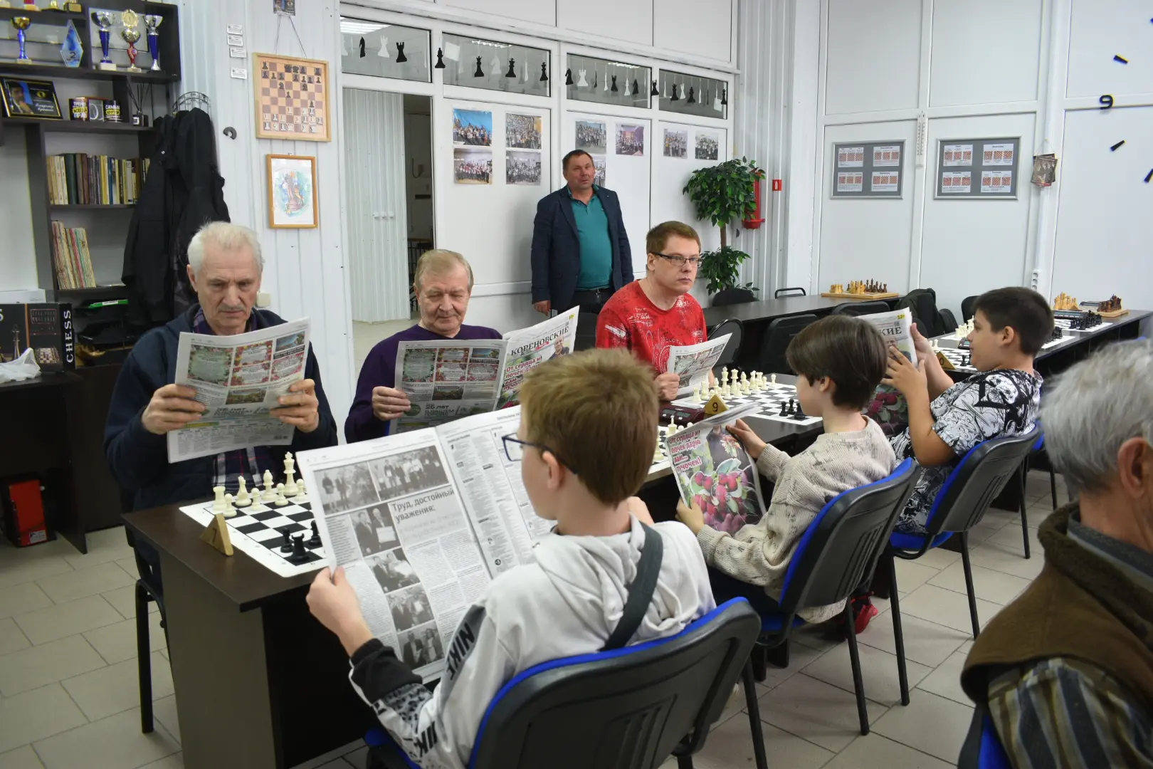 Невероятно занимательная игра в шахматы и чтение интересной газеты "Кореновские вести" - это прекрасно проведённый воскресный день!