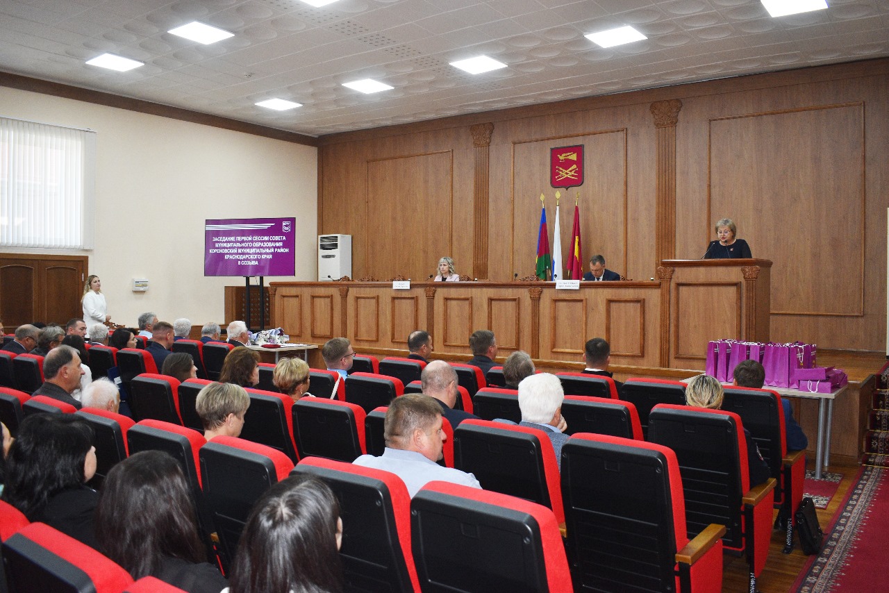 1 сессия Совета муниципального образования Кореновский муниципальный район Краснодарского края VIII созыва прошла 2 октября в большом зале районной администрации.