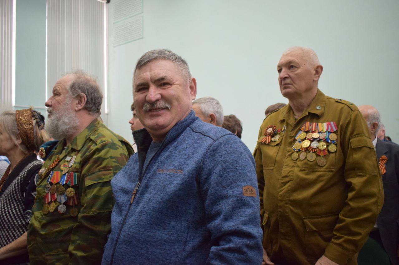 В актовом зале с приветственной речью к присутствующим обратился Курбон Юсупов, председатель Кореновского районного отделения Краснодарской региональной организации общероссийской общественной организации "Российский союз ветеранов Афганистана", в которой состоит 199 человек. Минутой молчания присутствующие почтили память ушедших однополчан.