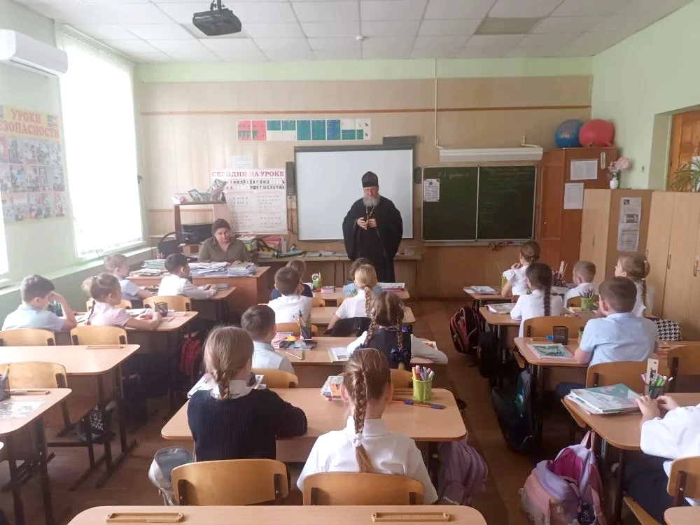 О значении Великого поста и грехе сквернословия рассказал ученикам 2, 3 и 9 классов школы №3 им. Героя Российской Федерации Р.М.Хабибуллина настоятель храма преподобного Саввы Освященного протоиерей Александр Панюта.