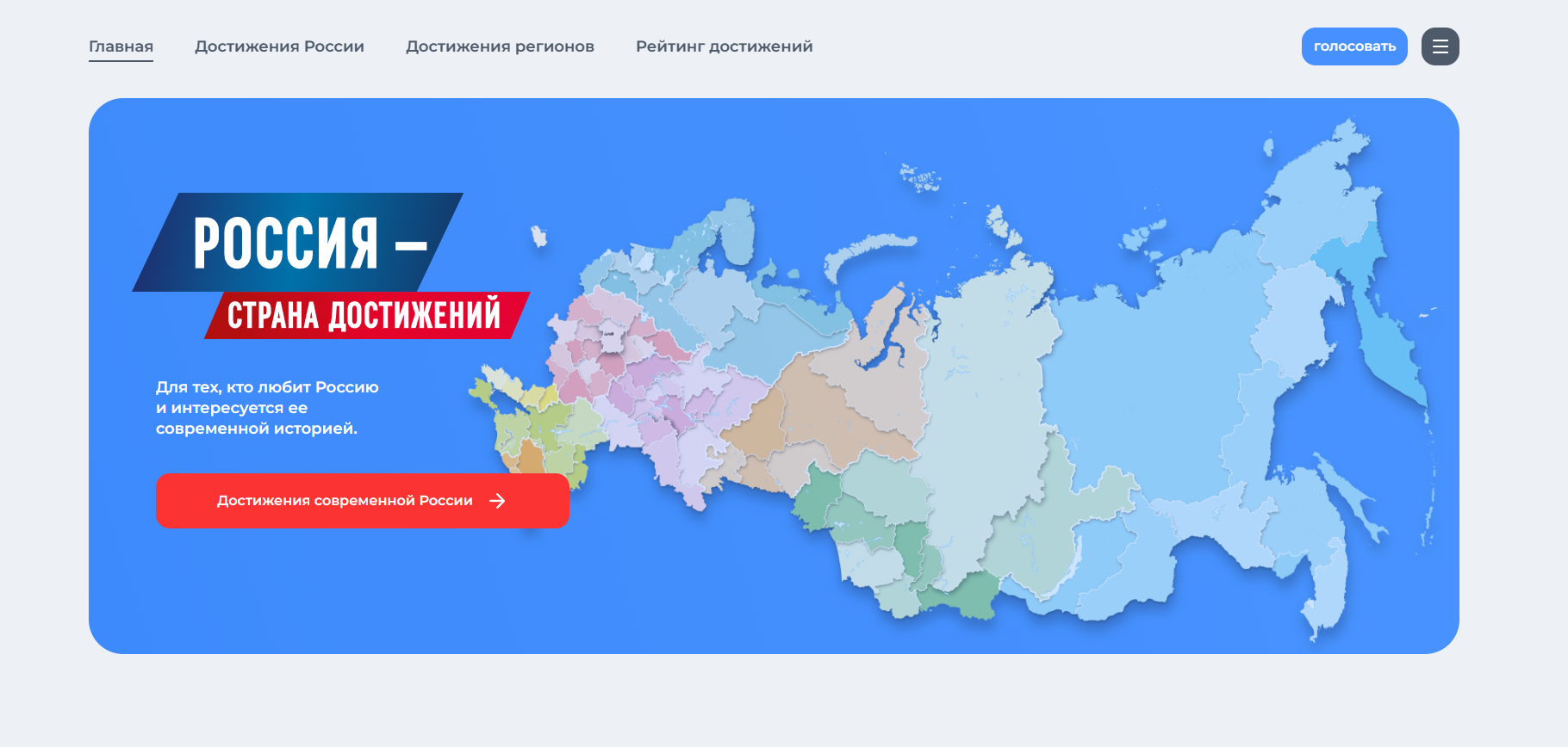 Шаг 1. Зайдите в раздел «Достижения регионов» на главной странице портала или выберите кнопку «Голосовать» на главной странице сайта.