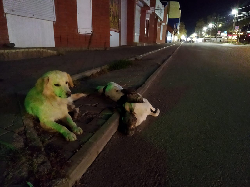 Проезжая на машине в 22-30 по ул. Р.Люксембург, стала свидетелем тяжёлой сцены. Внимание привлекла белая собака, которая как-то необычно себя вела. Вернее, их было две. Но одна, пятнистая, была недавно сбитая и уже умершая, лежащая на самом краю проезжей части. А другой пес, без реакции на проносящийся мимо транспорт- а это самый центр города, перекресток Р.Люксембург и Мира - пытался ей помочь, он думал, наверное, что помогает: тыкался мордой, трогал лапой, ложился рядом, иногда вытягивая морду и поникая на вытянутые лапы. Свет рекламы от магазина рядом кидал зелено-красные блики на асфальт, издали доносился шум от гуляющей молодежи. Пёс молча вскакивал и снова пытался "реанимировать" своего друга. Тело пятнистой было неподвижно.