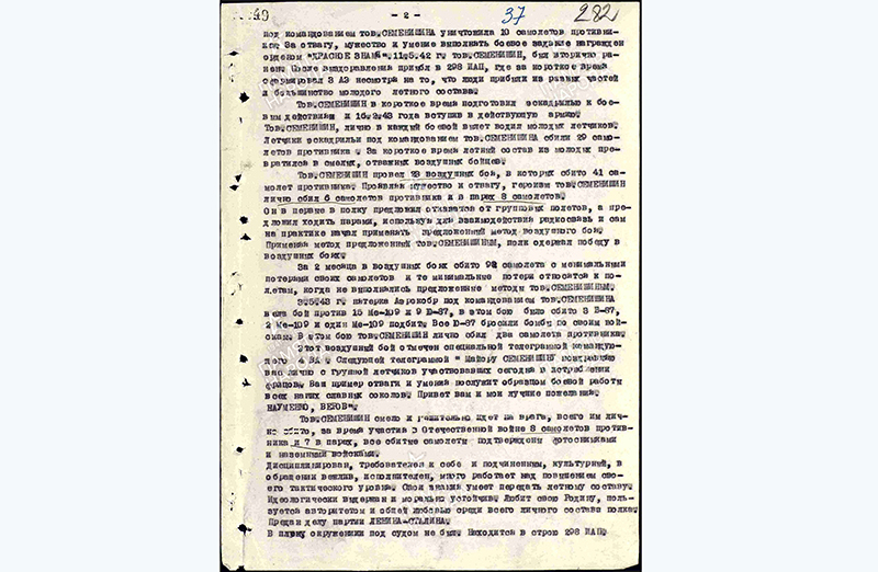 - лейтенант М. С. Комельков - на 2.06.4943 года - 76 боевых вылетов, 39 воздушных боев, 15 + 5 сбитых;