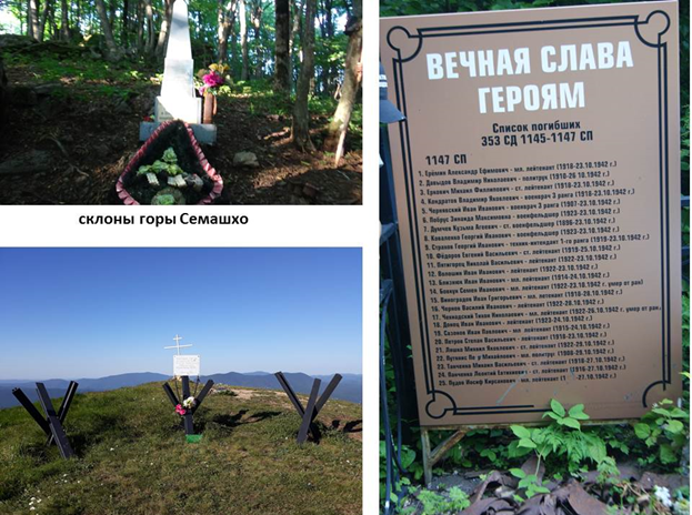 "От Советского Информбюро. Вечернее сообщение 30 октября 1942 года. В течение 30 октября наши войска вели бои с противником в районе Сталинграда, северо-восточнее Туапсе и в районе Нальчика. На других участках никаких изменений не произошло. Северо-восточнее Туапсе наши части, преодолевая упорное сопротивление противника, медленно продвигались вперед. В районе одной высоты гитлеровцы после безуспешных многодневных атак перешли к обороне. За два дня боевых действий на этом участке уничтожено до 800 немецких солдат и офицеров..." Эта высота была горой Семашхо. А на ней сражался и погибал кореновский 1147-й стрелковый полк.