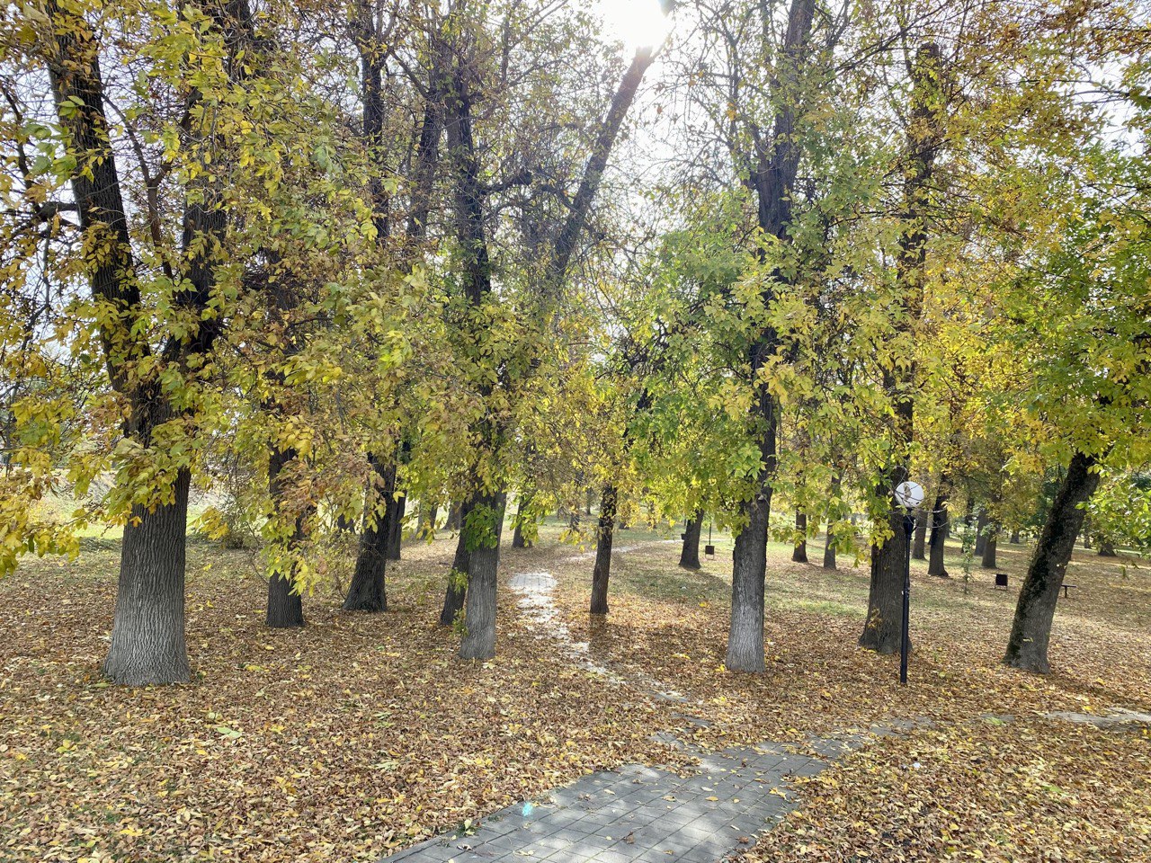 Как приятно в период листопада походить по этому густому ковру, поддевать листву ногами и шуршать ими, вслушиваясь в звуки природы. А как весело детворе подкидывать горстку яркой листвы, поднимать руки вверх, радуюсь этому яркому дождю из листьев, а потом поваляться на этой мягкой перине. Тихая погода. Ветра нет. Светит яркое осеннее солнце, пробивающееся через листву деревьев. Горожане задерживаются на скамейках, чтобы насладиться последними теплыми деньками и впитать солнечные лучи, прищуриваясь от удовольствия.