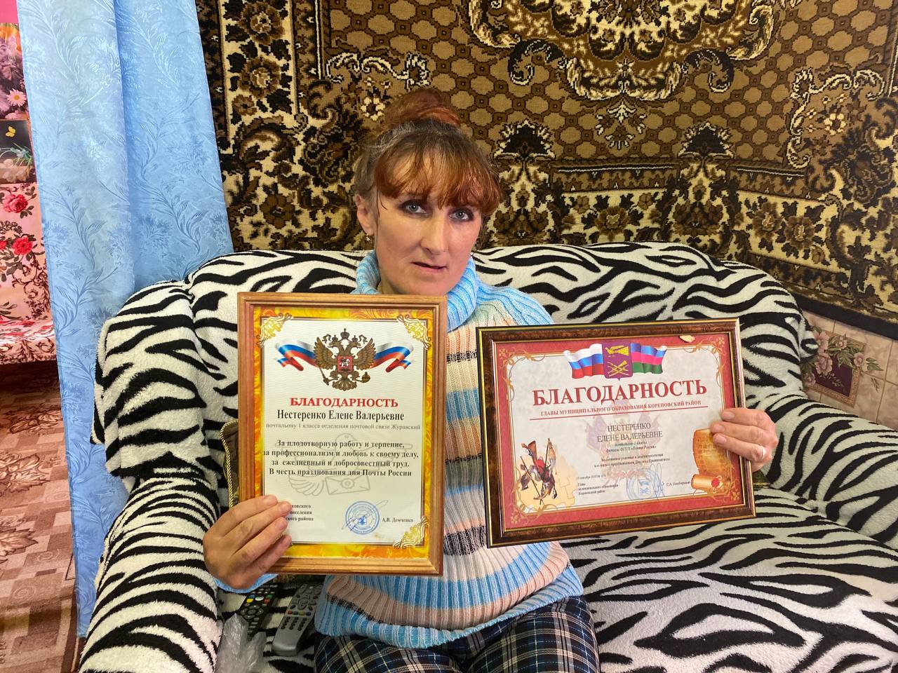 Хорошо закончила школу № 34, затем курсы бухгалтеров, но работы по профессии в маленьком хуторе найти не удалось. По приглашению Елены Чунаревой пошла работать на почту. Почти 2 года проработала на подмене, а с 2011 года, уже почти 15 лет, работает на постоянной основе. С утра - оператор, а после обеда разносит пенсии и газеты. Она обслуживает более 200 домов, 156 пенсионеров, для которых она самый желанный гость и источник позитива.