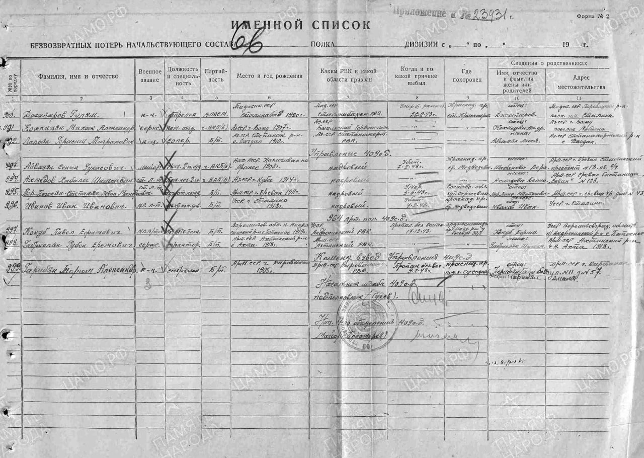 Помимо этого в нашем распоряжении имеется именной список безвозвратных потерь начальствующего состава, где все три участника боя записаны убитыми 07.02.1943 г.