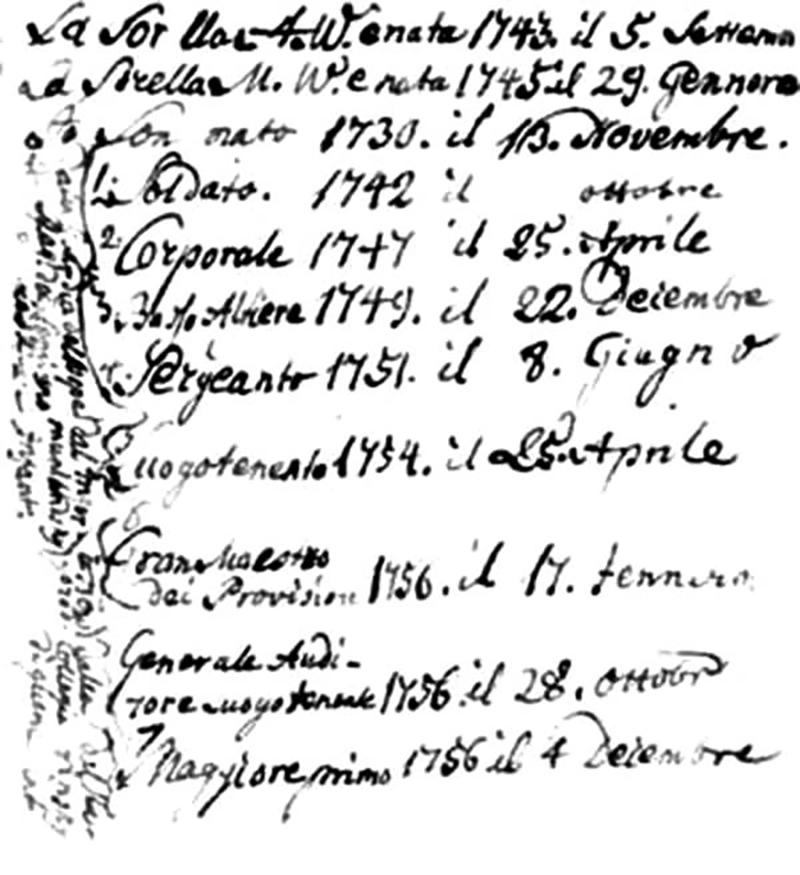 Все даты, касающиеся прохождения службы, полностью подтверждаются послужными списками полководца, а также его докладными записками с автографом на русском языке.