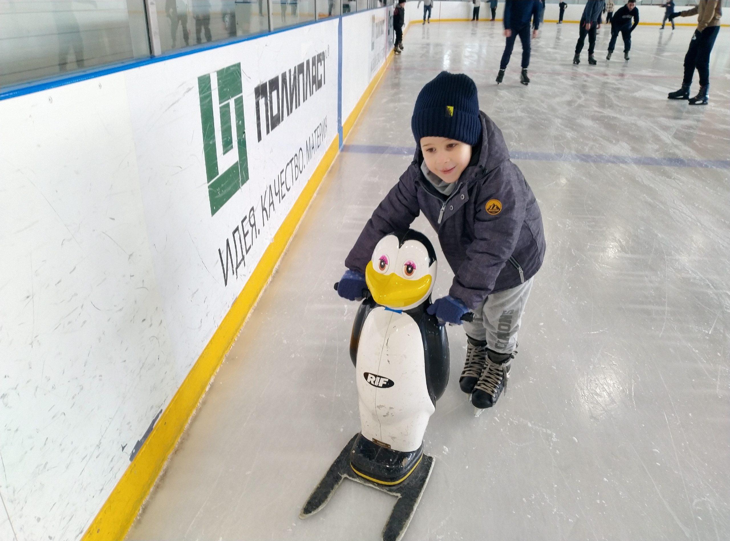 А чтобы растрясти лишние калории, которые присутствовали в изобилии в новогоднем оливье и селедке под шубой, мы отправились на каток. Скажу честно: фигурное катание у нас – это пока больше фигурное падение. Последний раз ступали на лед год на-