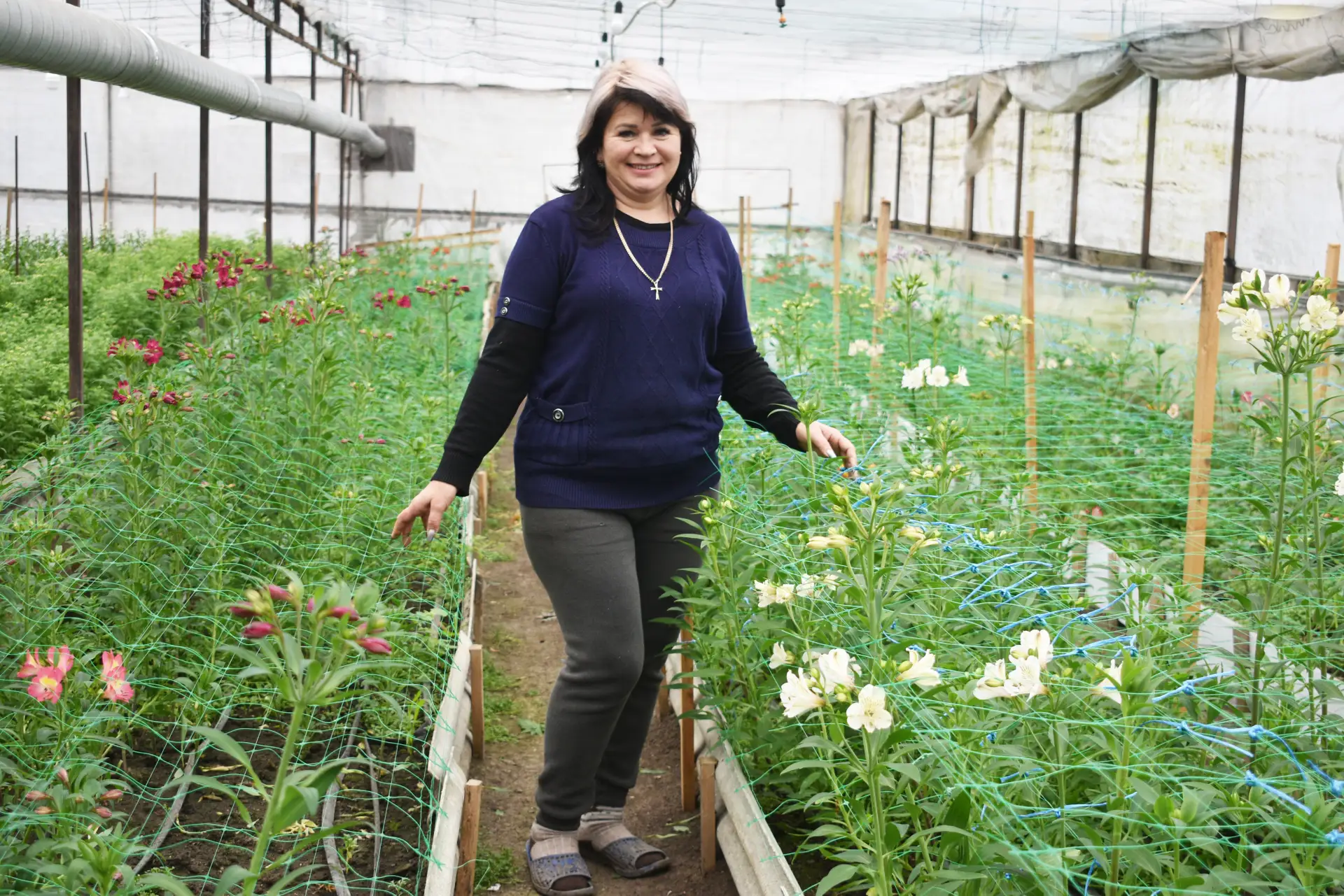 Невероятно красива в теплицах Светланы Карась альстромерия, также известная как перуанская лилия или лилия инков - удивительное и необычное растение. Ее здесь выращивают на срезку и отвозят в Краснодар для букетов. Альстромерия начинает цвести с осени и до мая, летом «уходит в спячку».