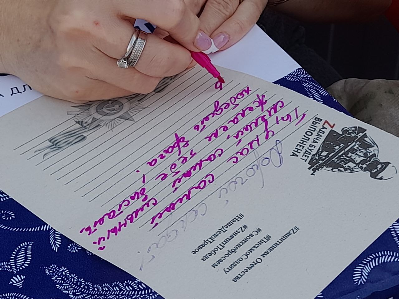 Маленькие посетители парка написали письма солдатам, которые сотрудники фонда обязательно передадут на фронт, а взрослые внесли свой посильный вклад в сбор на средства спасения бойцов.