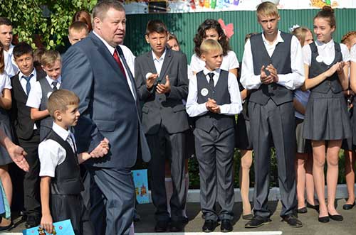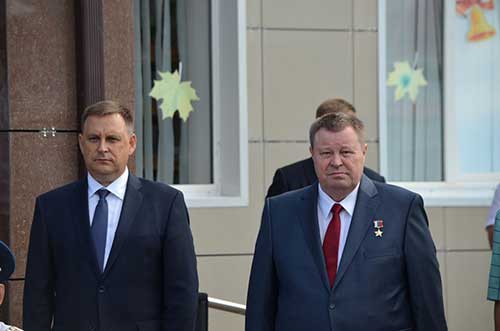Владимир Устинов и Сергей Голобородько на торжественной линейке в школе № 18