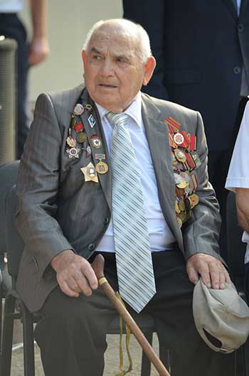 Почетный гость линейки - ветеран Великой Отечественной войны Михаил Григорьевич Сенченко
