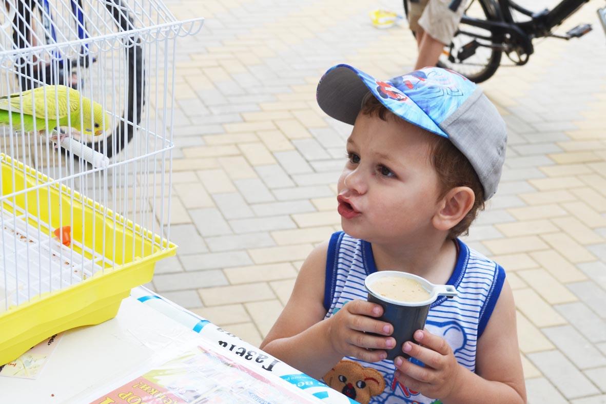 Как здорово, что у нашей нынешней детворы воспоминания о настоящем квасе из их детства будут те же самые, что и у нас! Еще бы, ведь для его приготовления райпищекомбинат «Кореновский» использует исключительно натуральное сырье, а именно — сахарный сироп и концентрат квасного сусла: сваренный и уваренный ржаной солод. Потому и срок годности у ГОСТовского напитка от нескольких дней до двух недель, не то что у химических. Потому и угощали мы кореновским квасом детвору без опасения! Кстати, взрослые тоже за компанию утоляли жажду, в то время как малыши любовались попугаем!