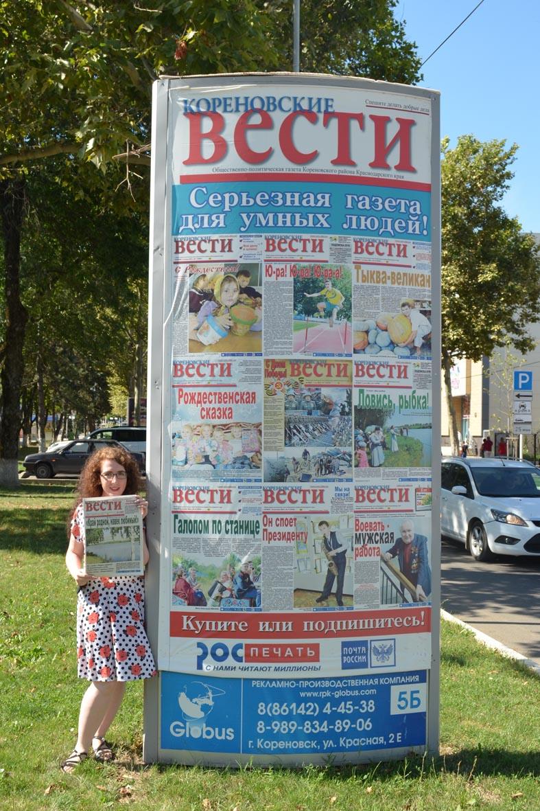 Подписаться на любимую газету можно на любой почте района, у своего почтальона, в редакции "Кореновских вестей" по адресу: г. Кореновск, ул. Красная, 83 и на днях подписчика - каждую пятницу августа и сентября с 9 до 11 часов у входа в рынок возле книжного магазина.