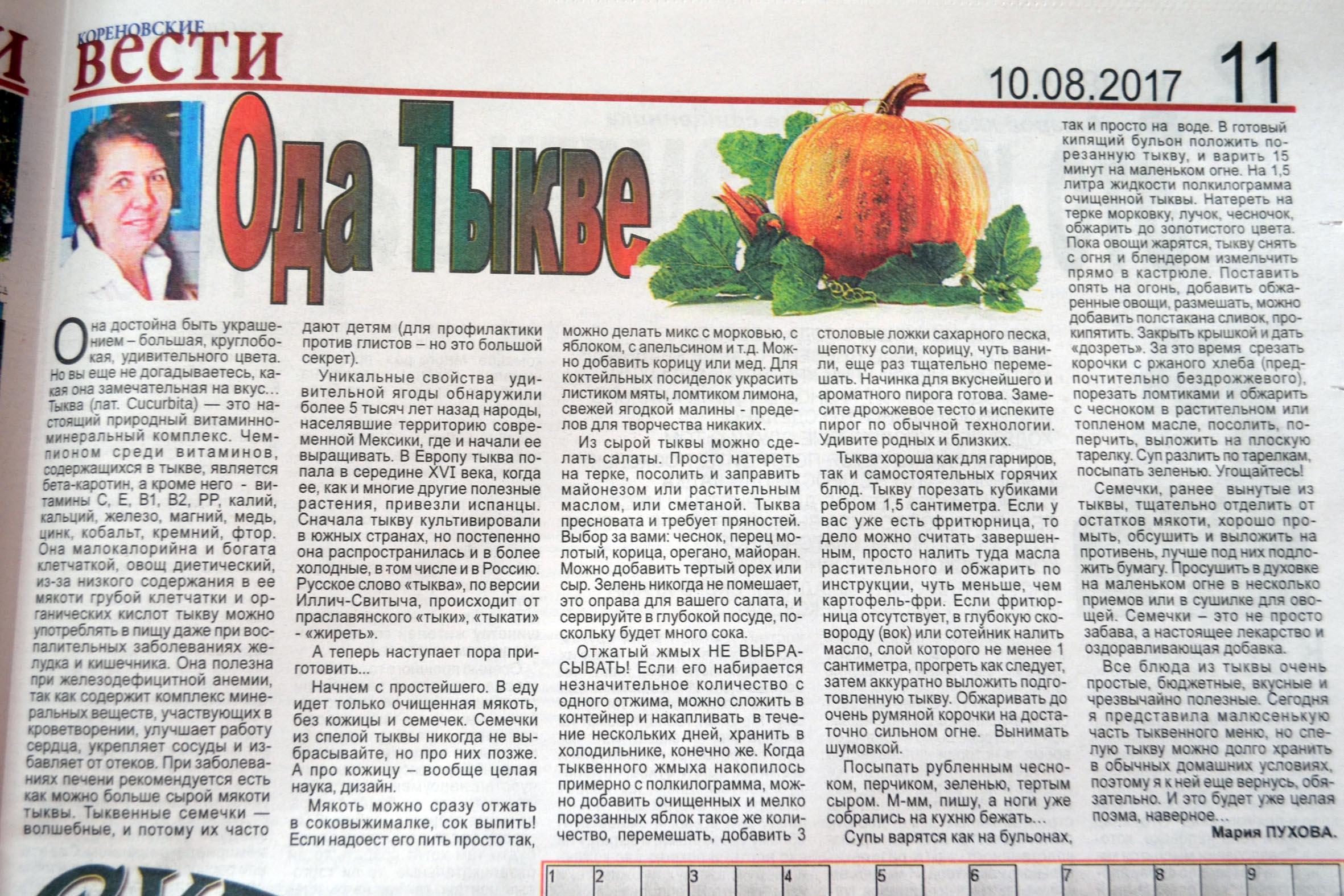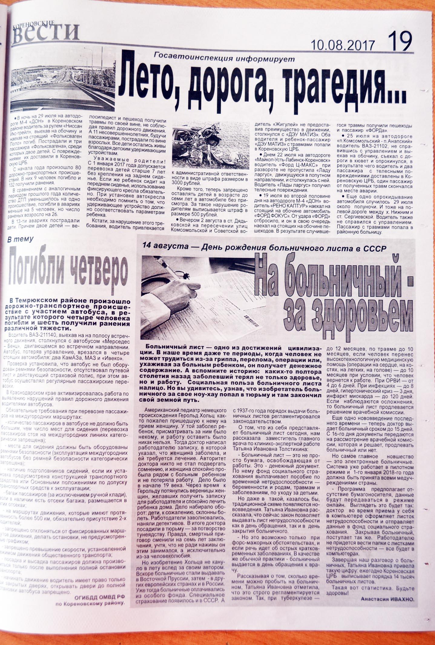 Еженедельник "Кореновские вести" - есть о чём почитать!