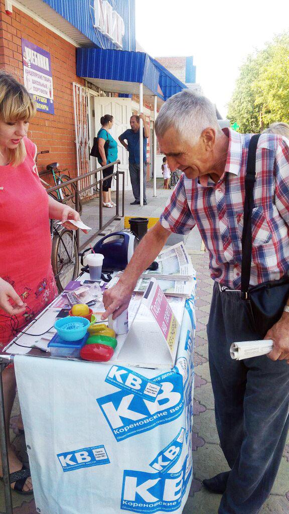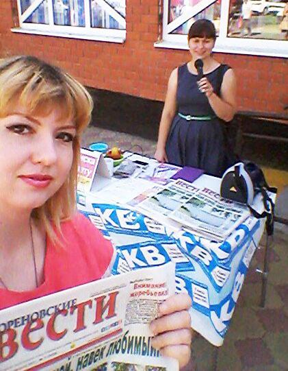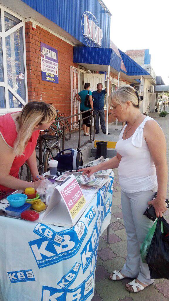 Каждую пятницу возле "Книжного" магазина по улице Красной сотрудники редакции газеты "Кореновские вести" подписывают на "районку" без очереди!