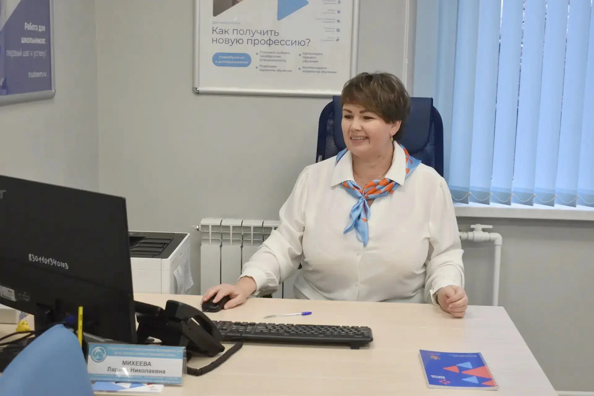 Благодаря модернизации службы занятости по национальному проекту «Кадры» Центр занятости полностью преобразился: обновили помещения, закупили современное оборудование, внедрили фирменный стиль «Работа России».