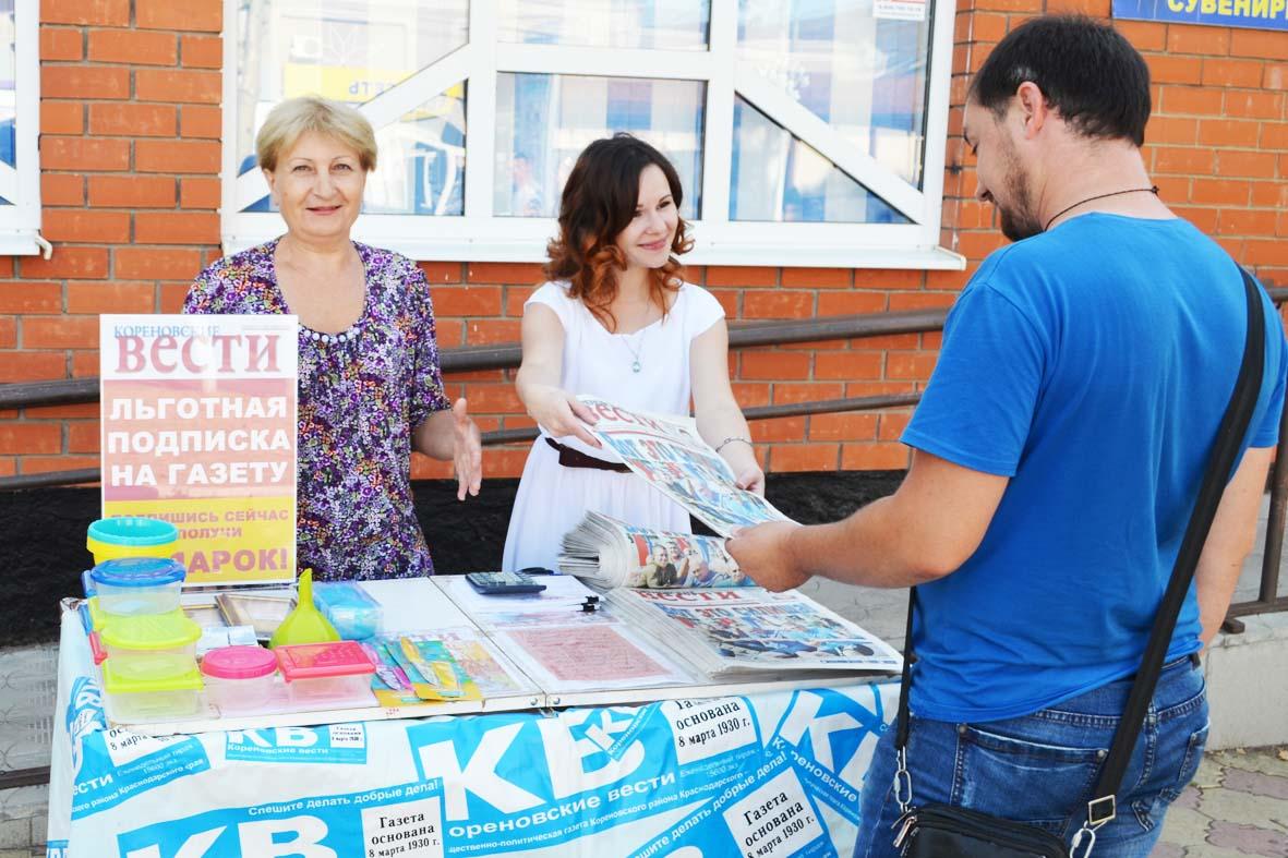 Сегодня у книжного магазина по улице Красной сотудники редакции подписывали всех желающих на газету «Кореновские вести» ПО НИЗКОЙ ЦЕНЕ, БЕЗ ОЧЕРЕДИ И ДАРИЛИ ЗА ЭТО ПОДАРОК!!! Если вы еще не успели выписать «КВ» на первое полугодие 2018 года за 494 рубля, то нужно поторопиться, ведь льготная подписка закончится вместе с летом. С 1 сентября цена на "районку" поднимется. Ждем вас на следующий день подписчика, который пройдет здесь же, в четверг 31 августа! До новых встреч, друзья!