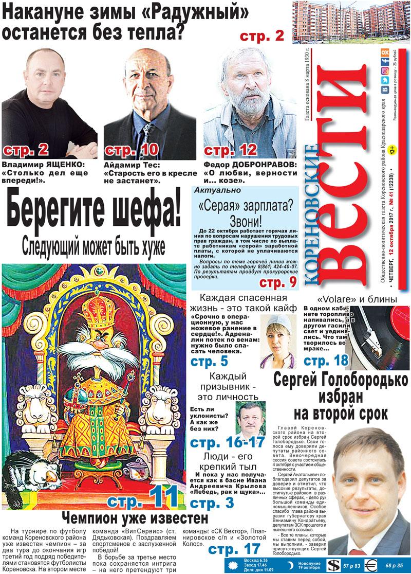Неожиданный формат первой полосы представила газета «Кореновские вести» в новом номере. Заголовки так и зовут заинтригованных читателей узнать подробности.