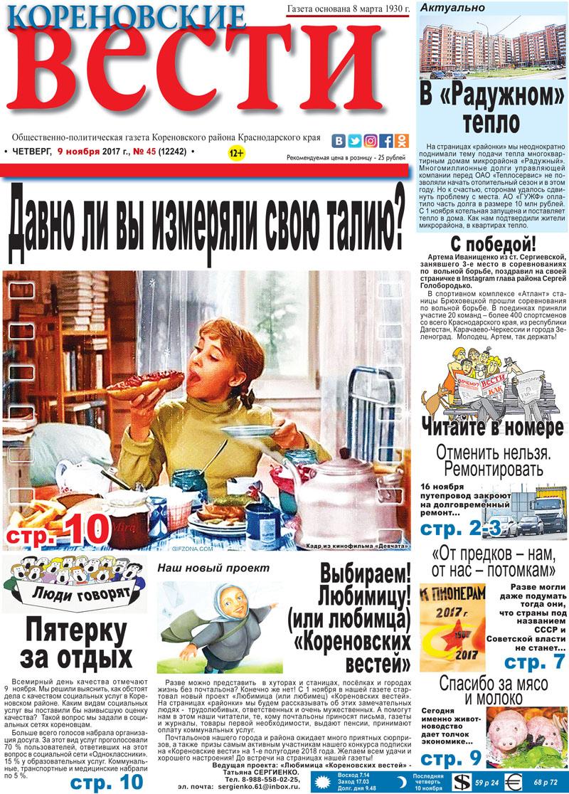 Купить газету "Кореновские вести" вы можете в киосках "Роспечати" или в любом почтовом отделении.