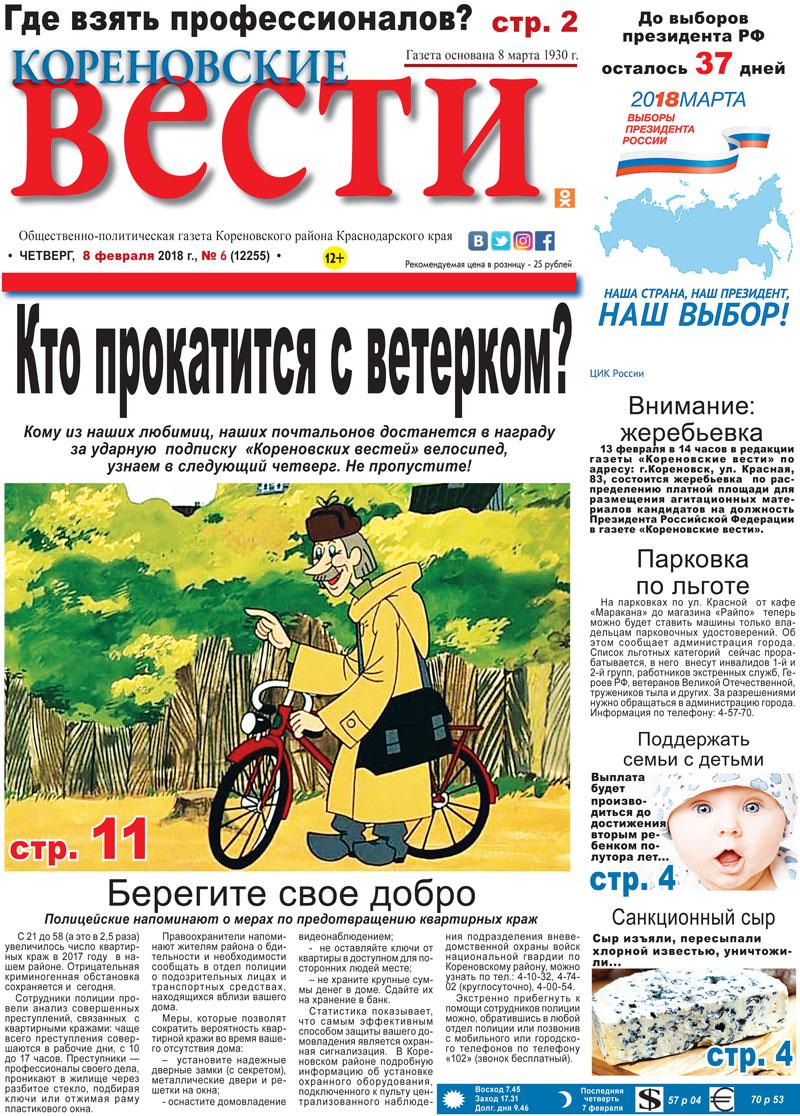 Купить газету "Кореновские вести" вы можете в киосках "Роспечати" или в любом почтовом отделении.