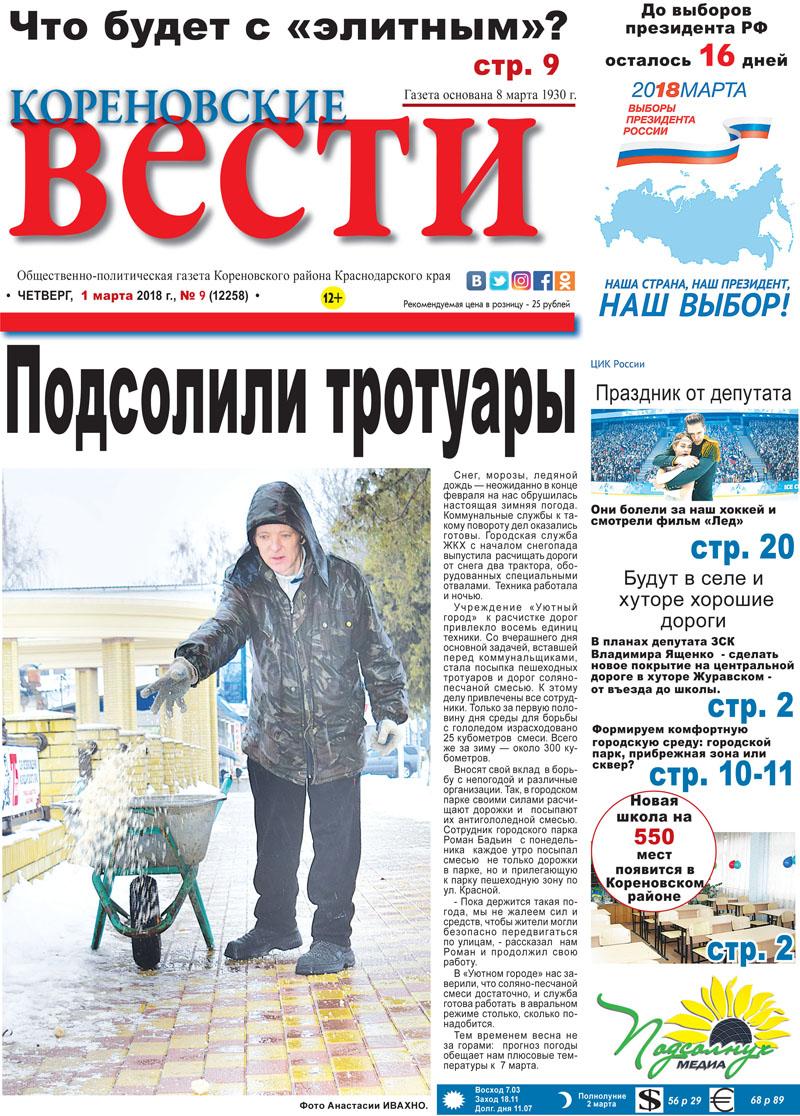 Купить газету "Кореновские вести" вы можете в киосках "Роспечати" или в любом почтовом отделении.
