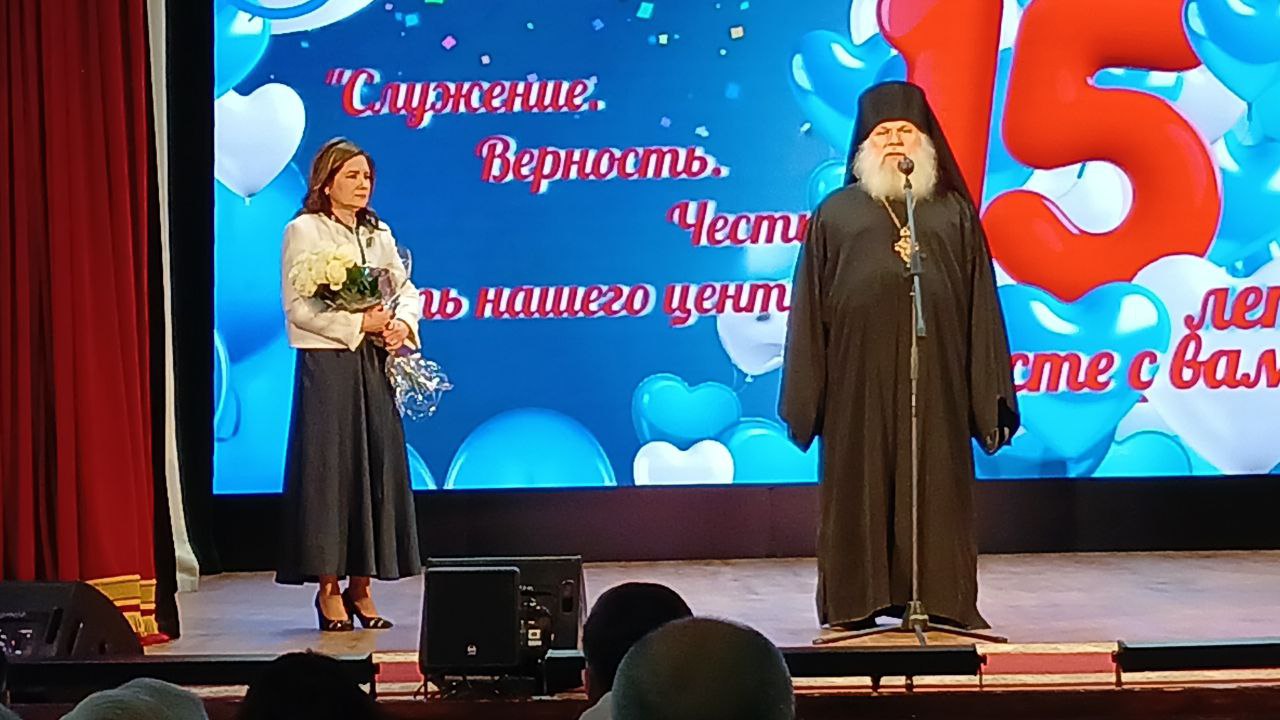 Поздравляя со сцены на торжестве, игумен Трифон, настоятель свято-Владимирского храма, пожелал: