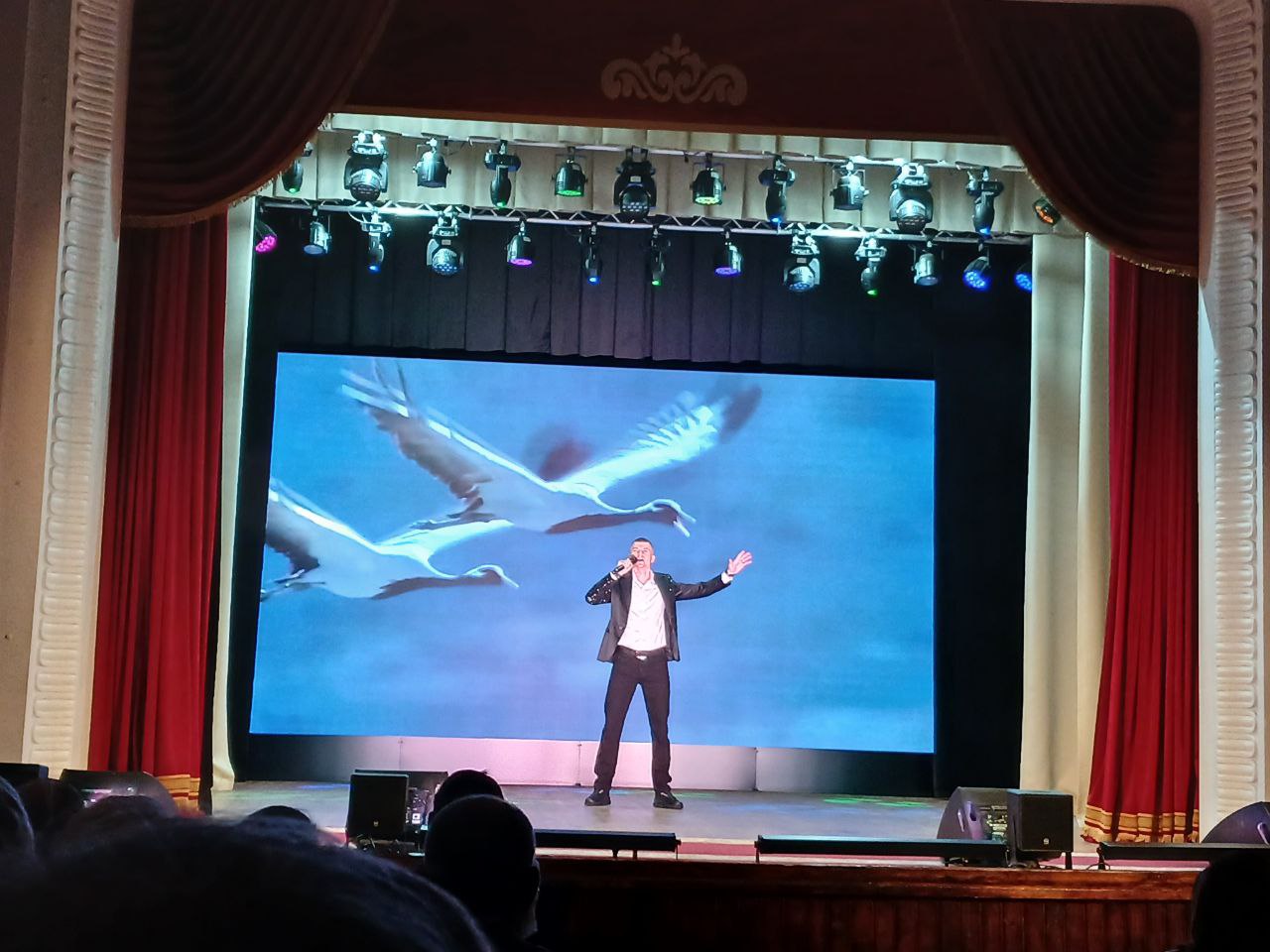 Если описать одним словом, лучше всего подходит: Духоподъемность. Мастера сцены, талантливые артисты подарили всем великолепное настроение своими музыкальными номерами. Любимые народные песни заставляли зал вставать и аплодировать. Первой была исполнена песня «Журавли» певцом из г.Ростова-на-Дону Николаем Горобцом, солистом театра песни композитора Александра Морозова «Самородки России», супер-финалистом Всероссийского фестиваля «Душа баяна». Продолжили солисты Е.Матросов, Р.Нургалиев, исполнившие песню «Свеча блиндажная». Затем на сцену вышел ансамбль народной песни «Родня», исполнив десяток песен, а первой - «Встань за веру, русская земля!». И снова под аплодисменты спел десяток народных хитов Николай Горобец, среди них: «Малиновый звон», «А он мне нравится», «Деревенская Россия» и другие.